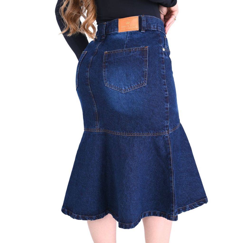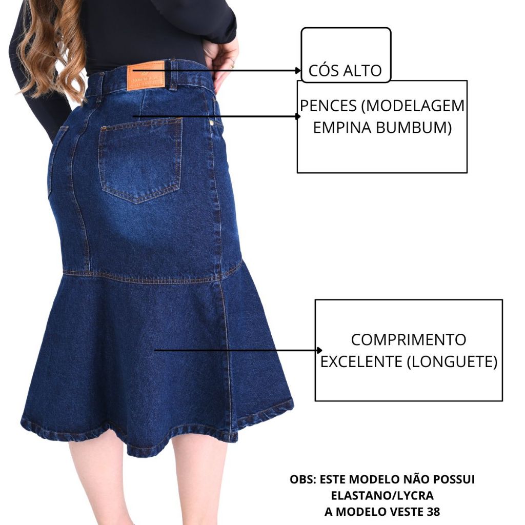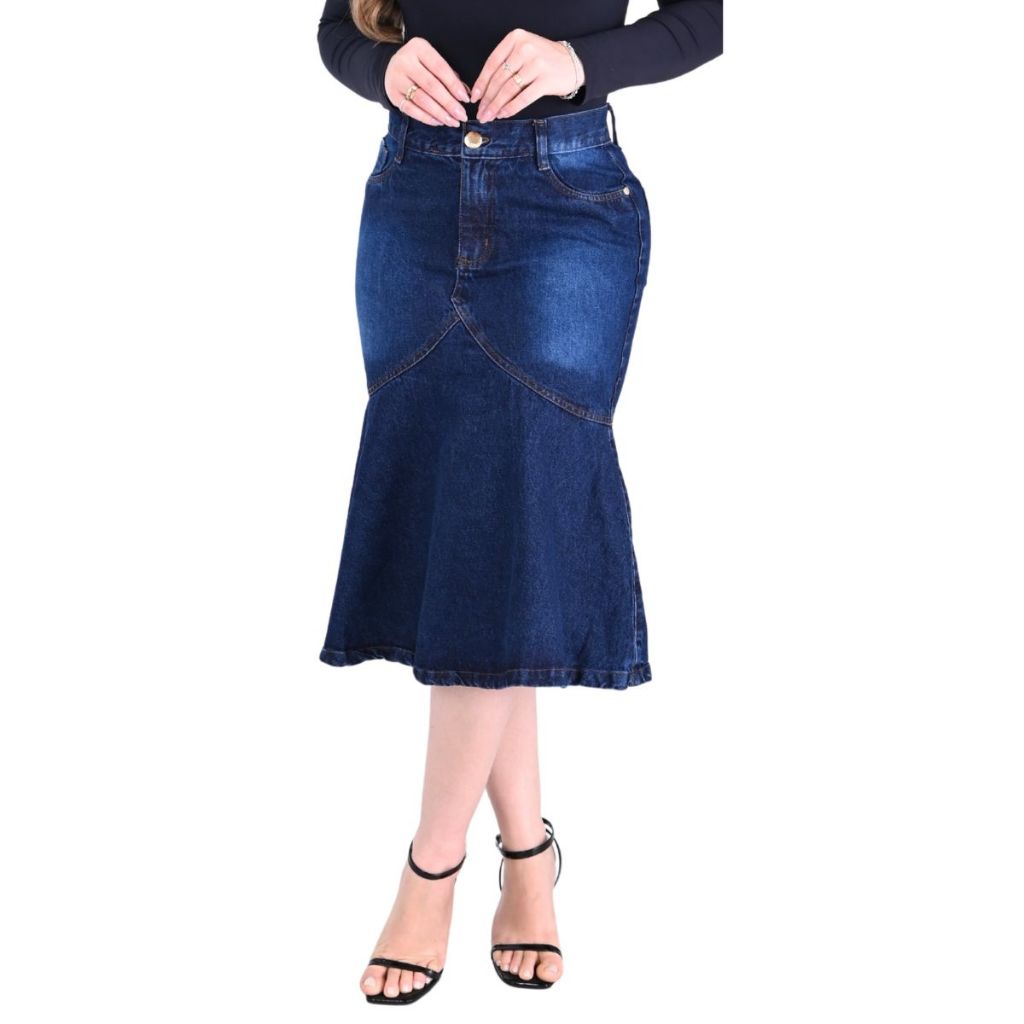 Saia Jeans Sereia Evangelica Midi Cintura Alta Casual