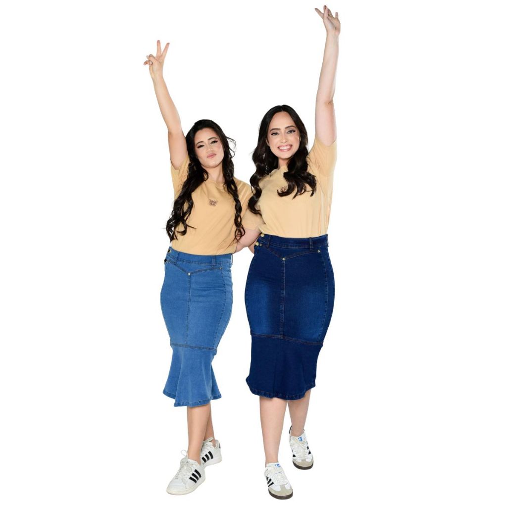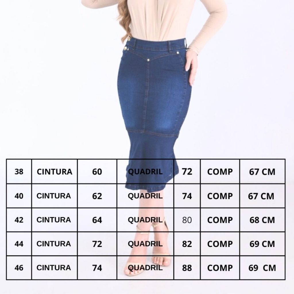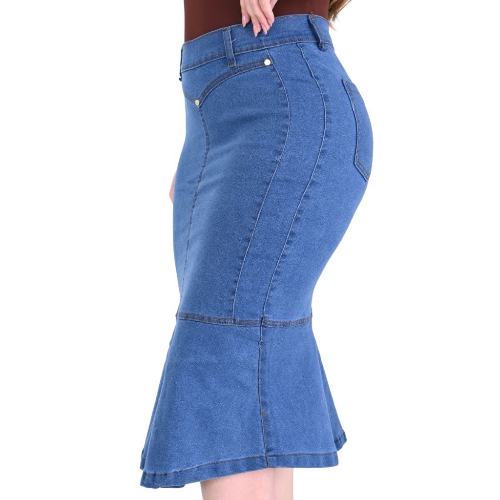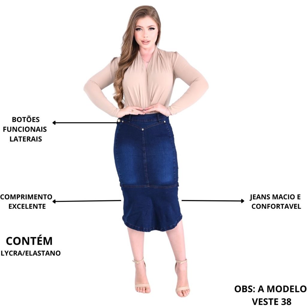 Saia Jeans Brunna Midi Com Botoes Laterais Com Lycra Confortavel