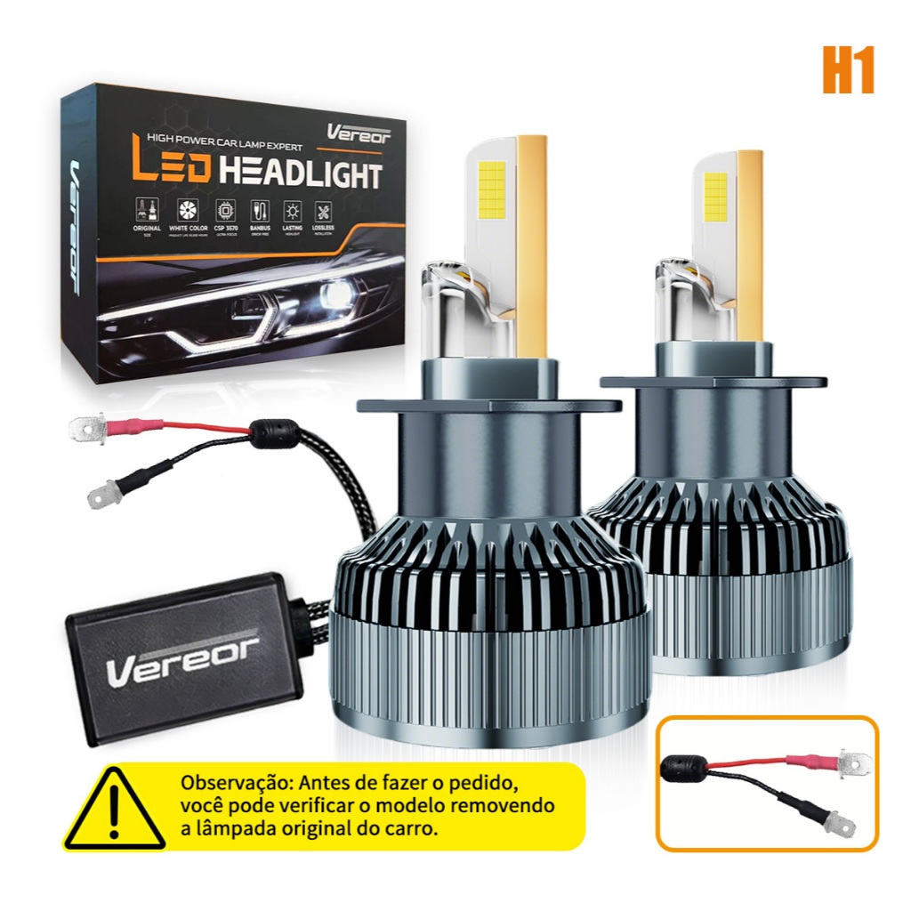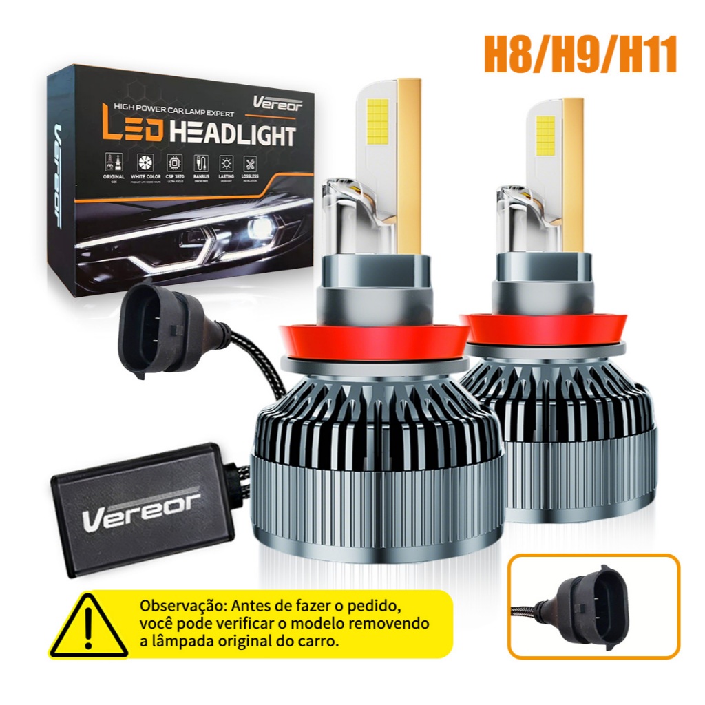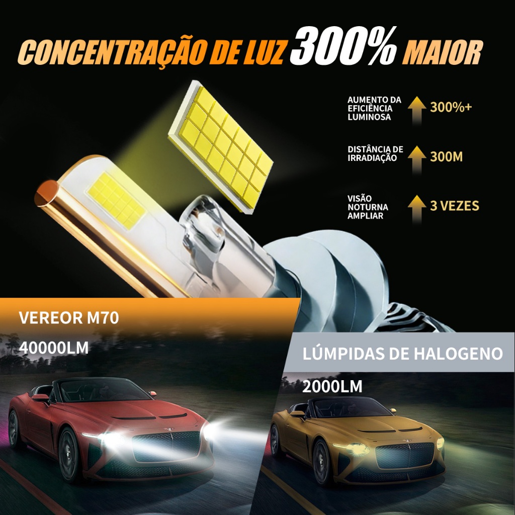 Par de Lâmpadas LED M70 H1/H3/H4/H7/H11/9005/9006 600W 40000LM 6000K Branca Pura Super Brilho Compativel