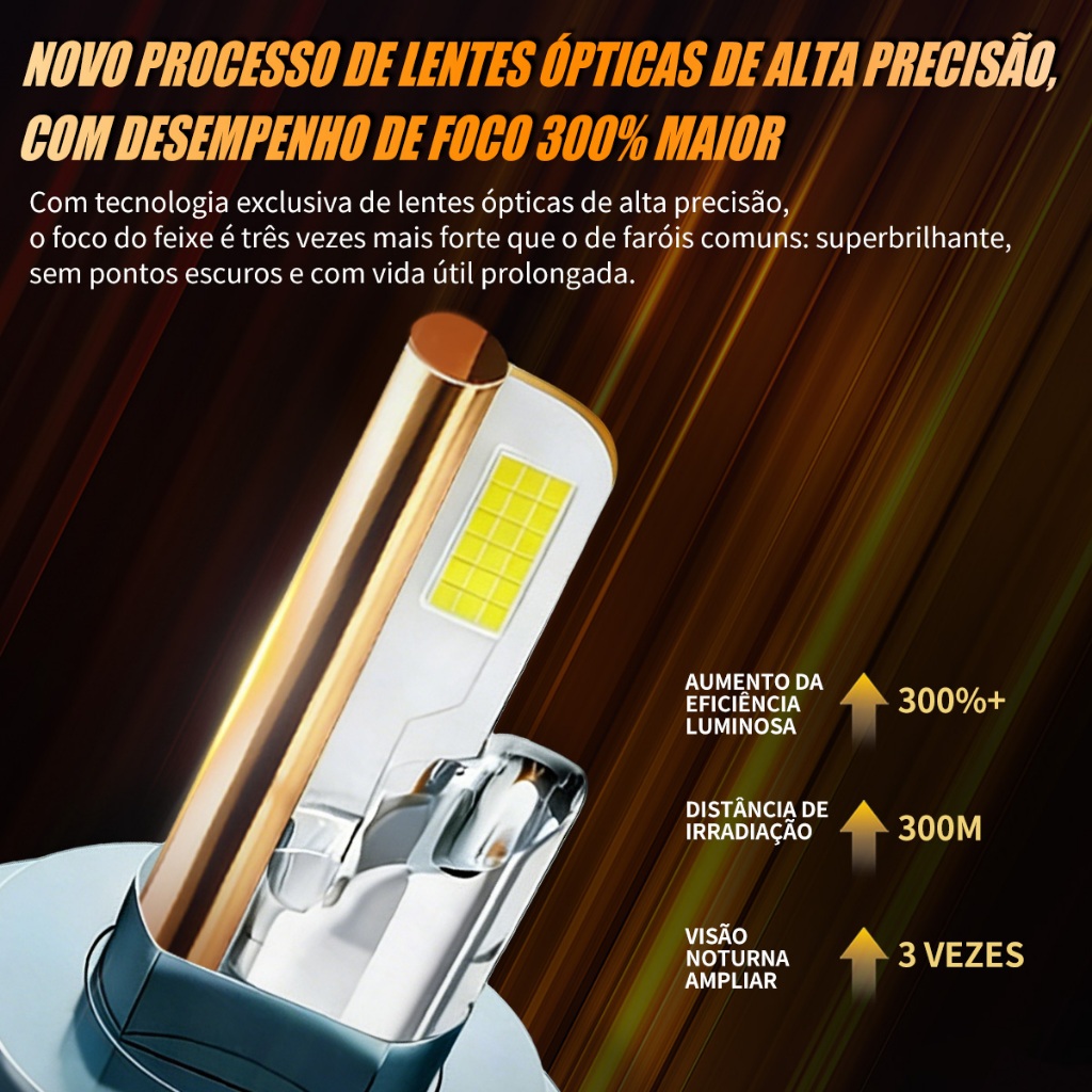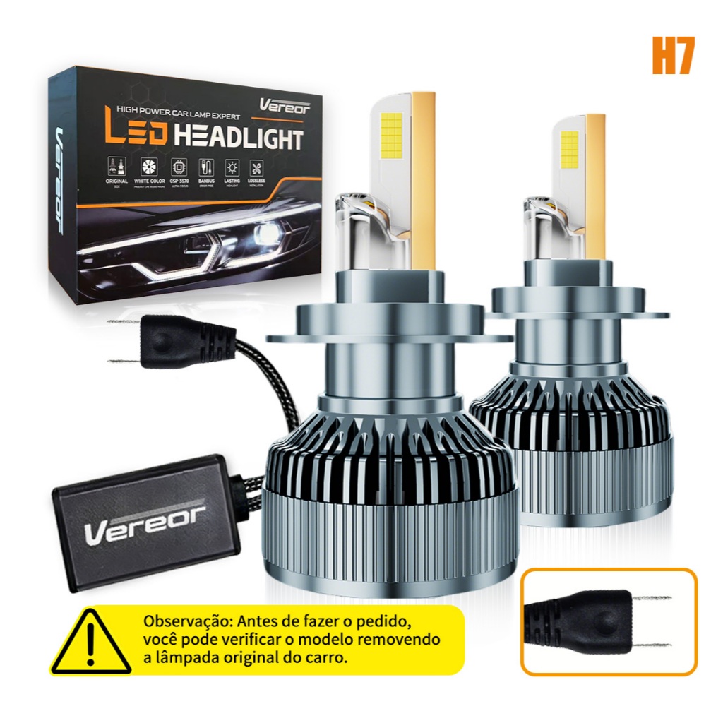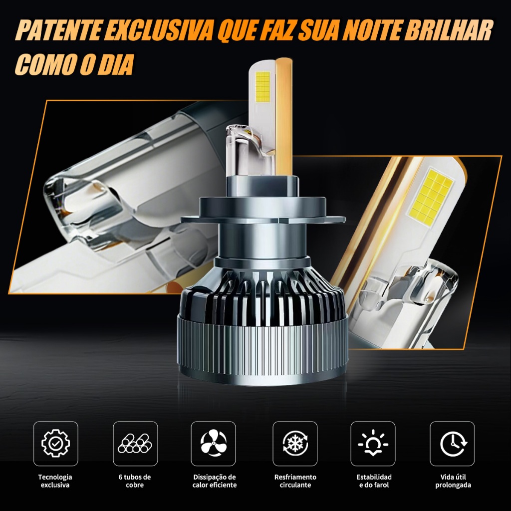 Par de Lâmpadas LED M70 H1/H3/H4/H7/H11/9005/9006 600W 40000LM 6000K Branca Pura Super Brilho Compativel
