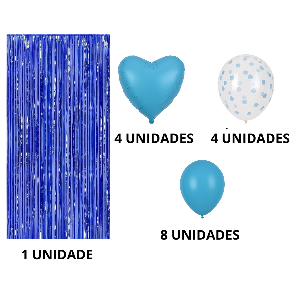 Kit Decoração Festa Painel Cortina Metalizada Buque Balões