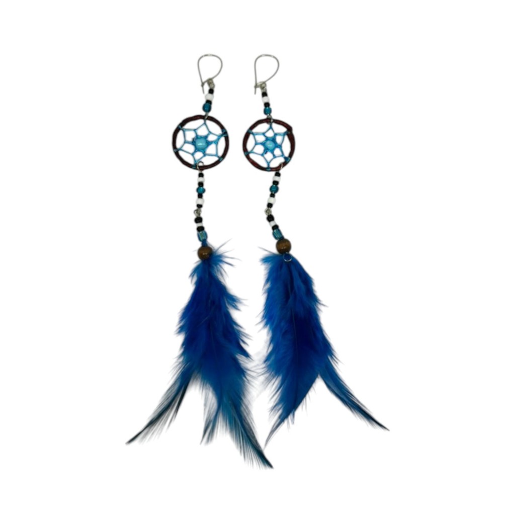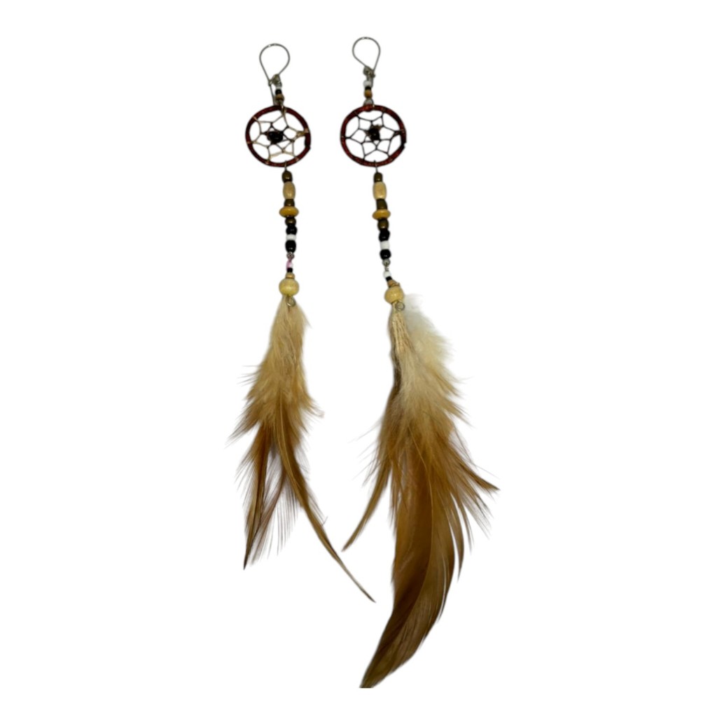 Par de Brincos Filtro dos Sonhos com Penas Coloridas | Artesanal Boho Místico
