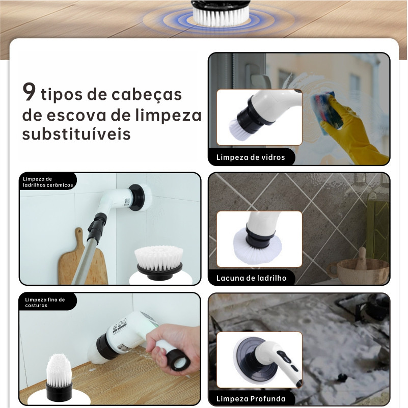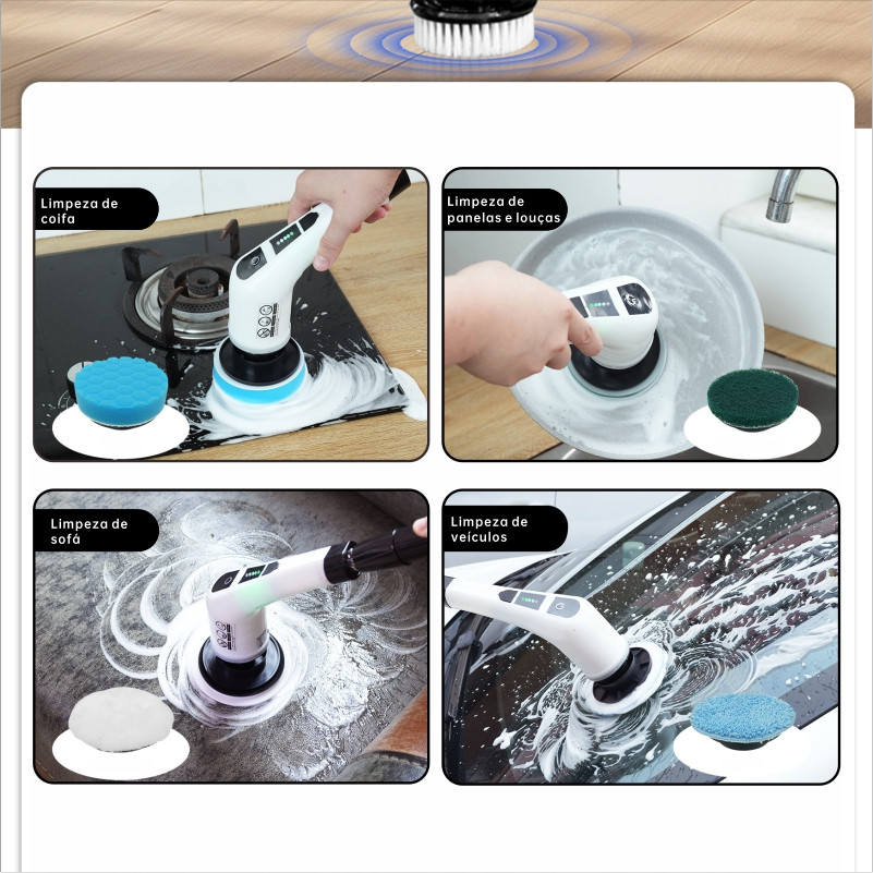 Escova Elétrica Recarregável 9 em 1 – Multiuso, Cabo Extensível, Para Casa e Carro