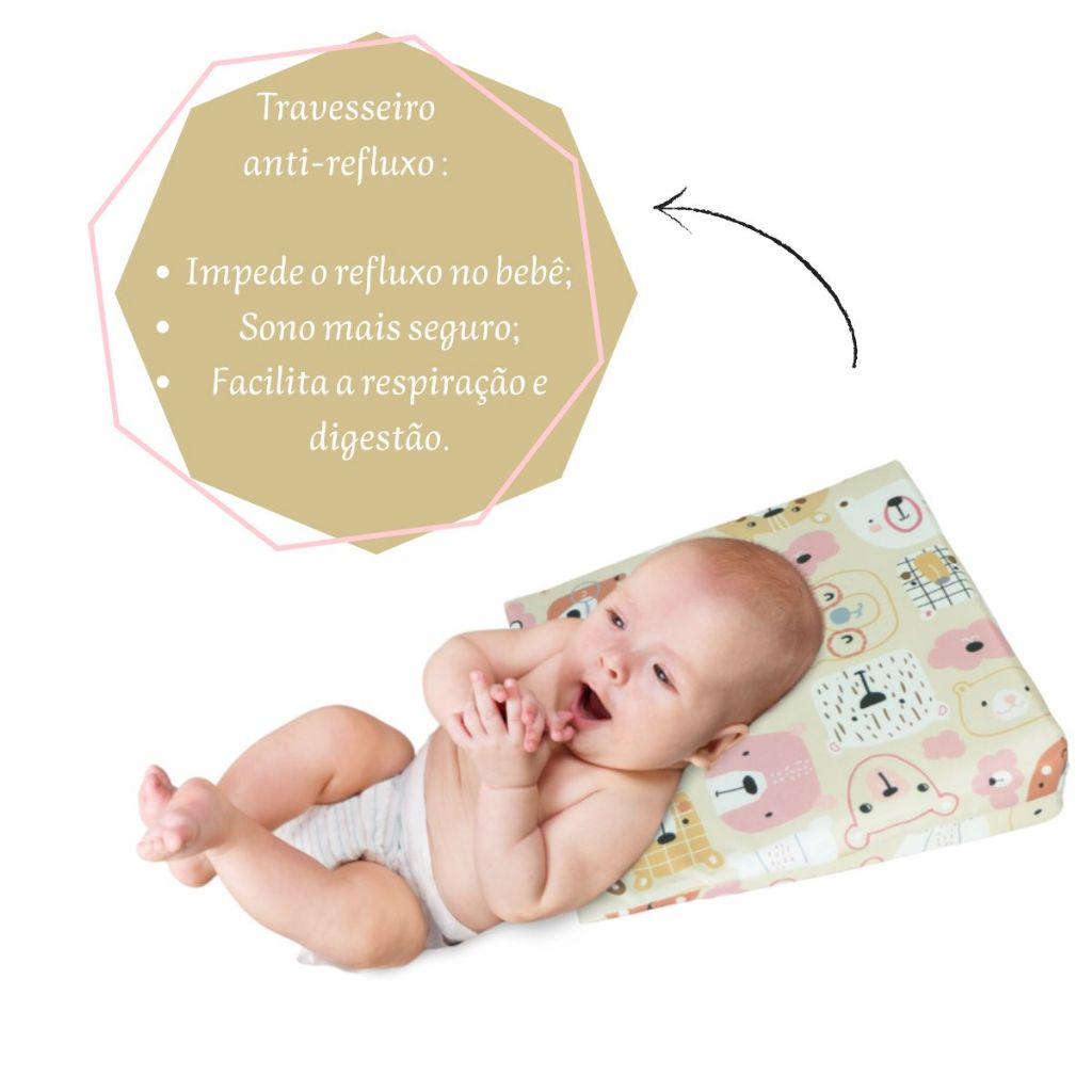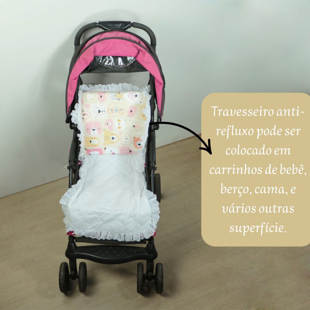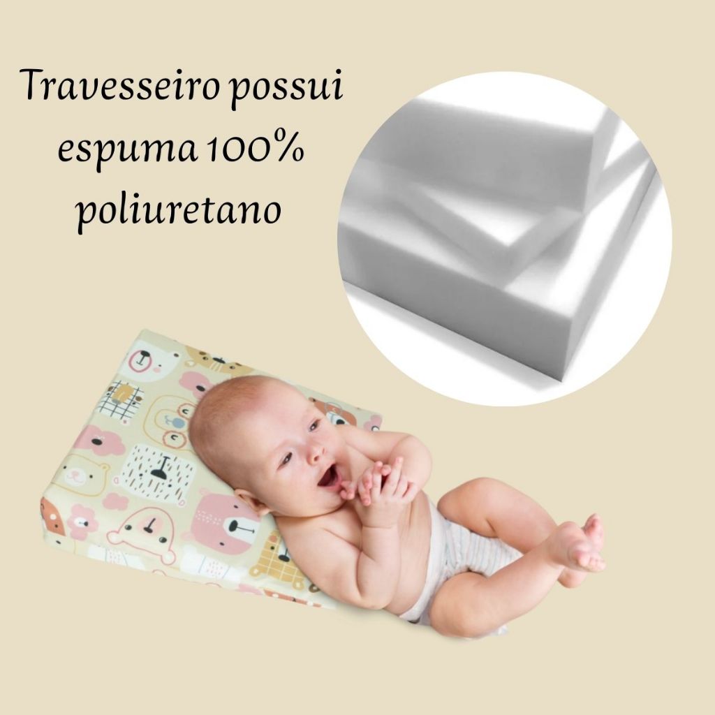 Travesseiro Anti Refluxo Para Carrinho Moises Antialérgico com Capa Lavável (Capa + Enchimento)