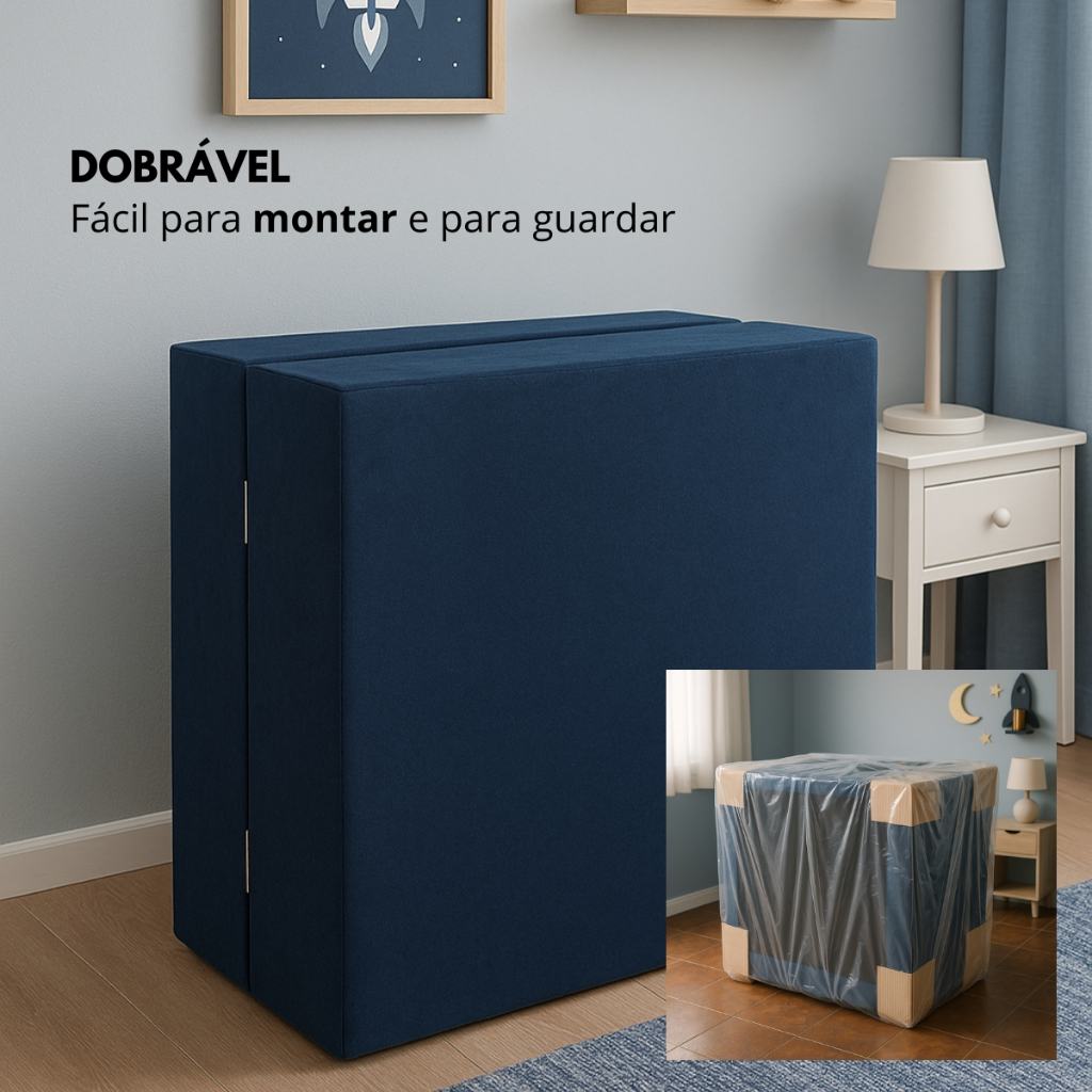 Cama Infantil Base Box Cama Menino Menina Dobravel Desmontavel 150x70 Tecido Suede Criança