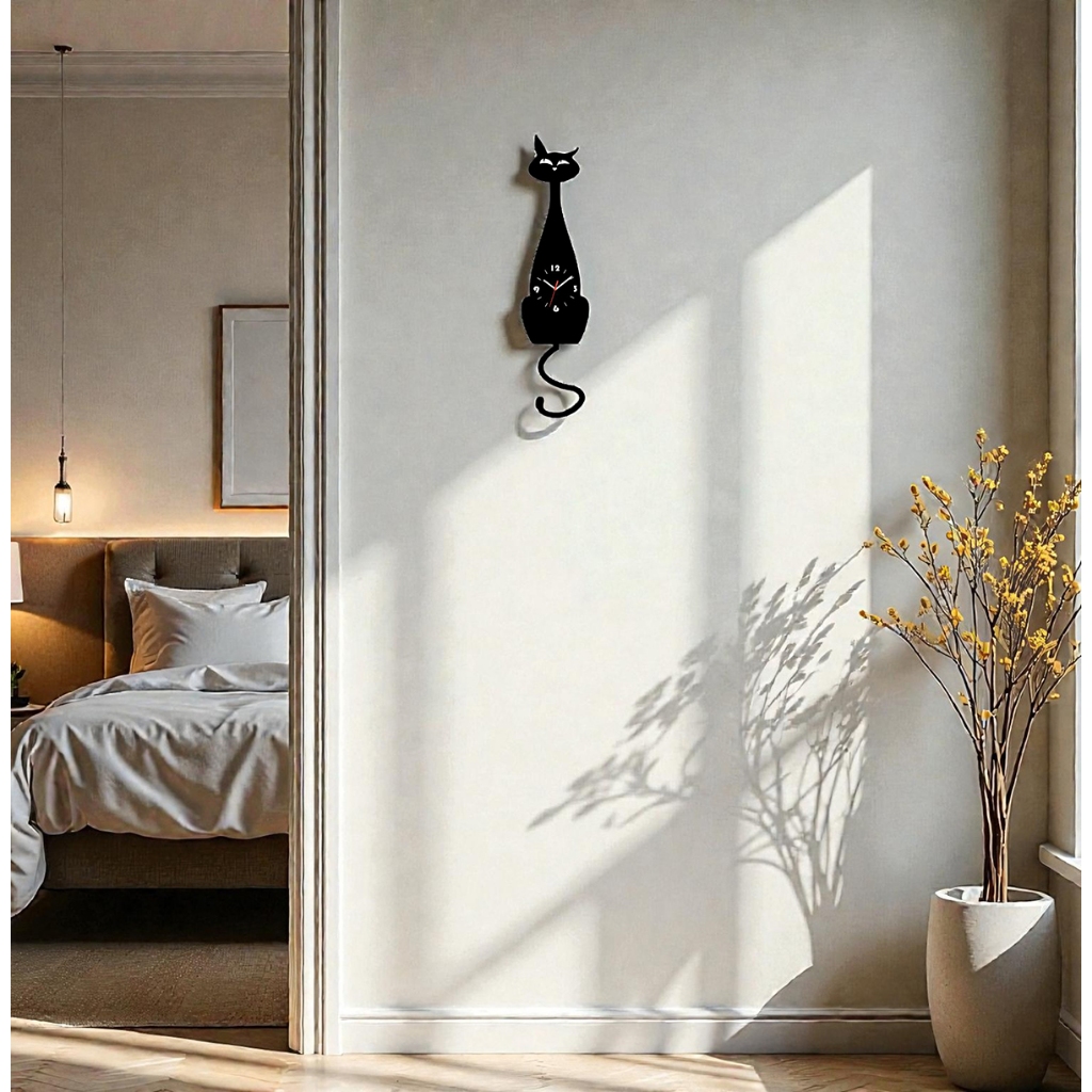Relogio De Parede Pendulo Gato Acrilico Balança Rabo + Impressão UV - Pendulart