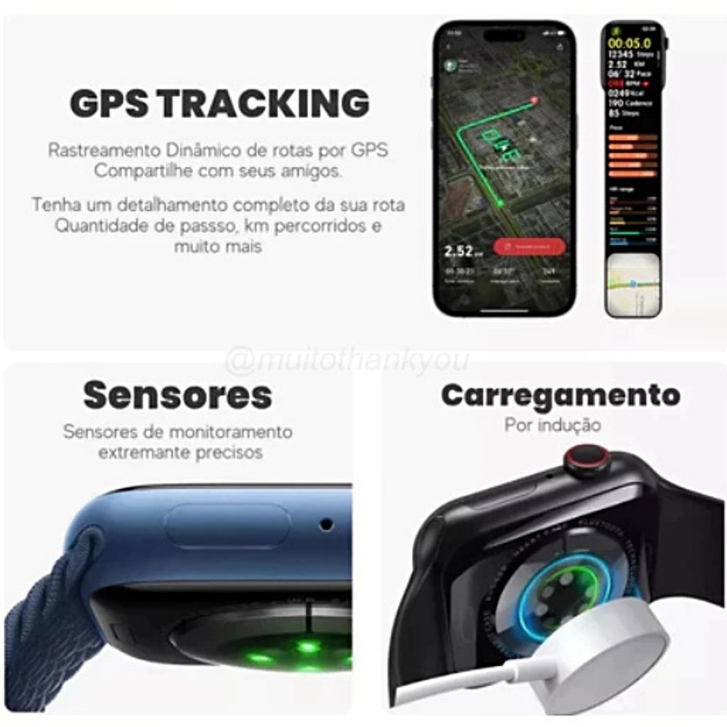 Smartwatch WL X PRO(46mm) 2 Pulseiras GPS unisex Esportes Faz Recebe Chamada inteligente