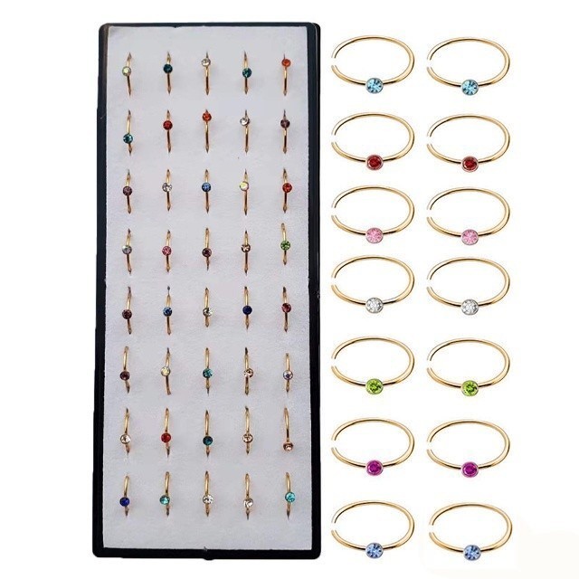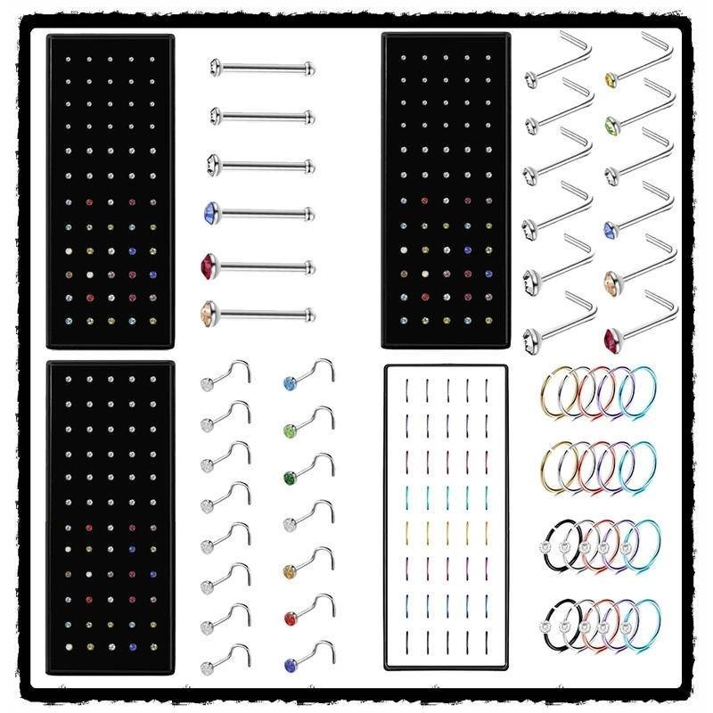 TB Moda Kit Com 40 Piercing de Nariz Cristal Reto/Dobrar lindo aço inox