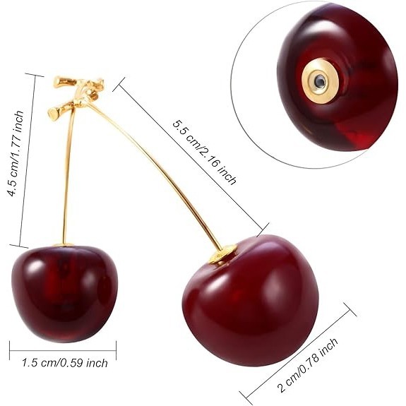 TB Presentes Brinco Feminina De Cereja Vermelho Pingente em Formato Bijuteria Fruta para Vermelho