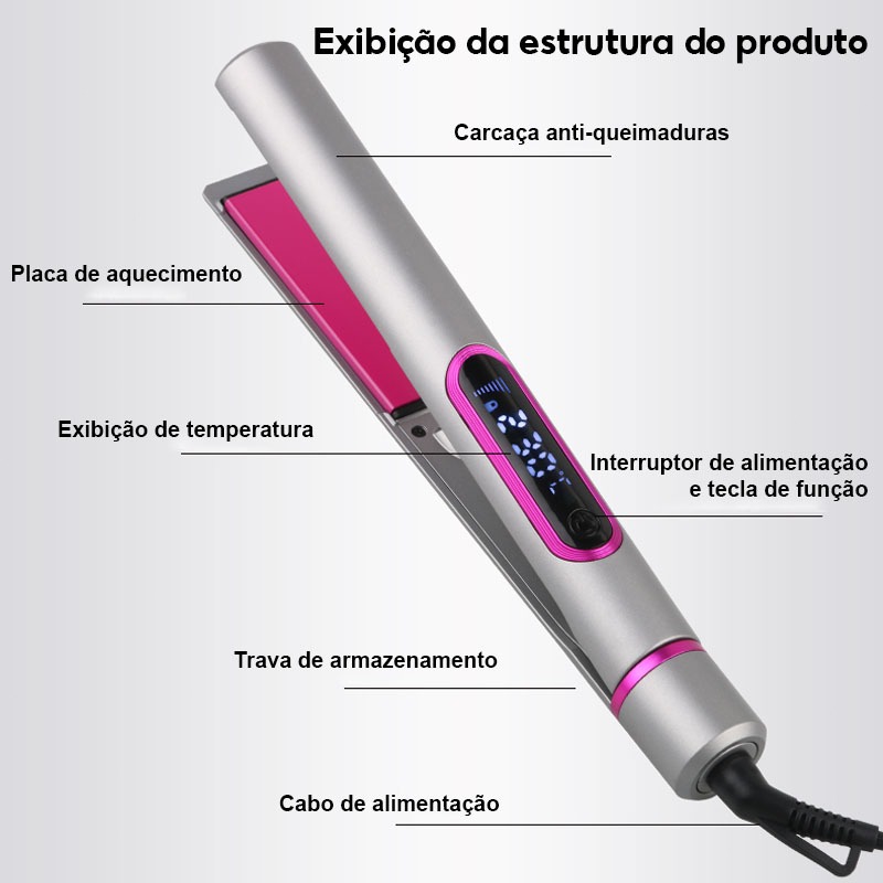 Alisador de Cabelo Profissional Display Digital, Temperatura Ajustável, Aquecimento Rápido para Todos os Tipos de Cabelo
