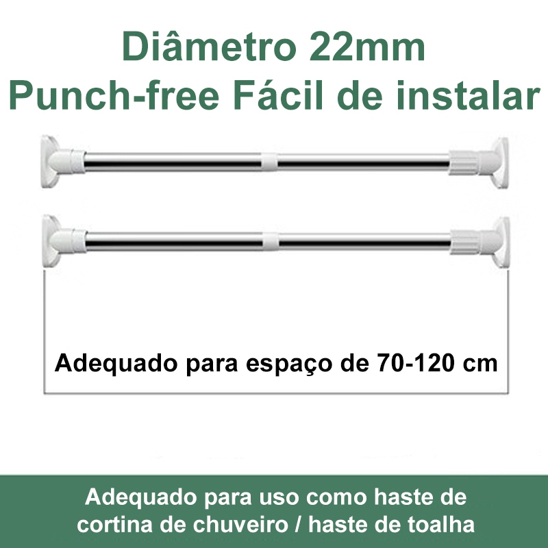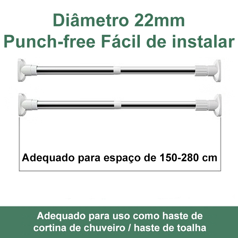 2 Peças Varão Extensivo Ajustável 70cm até 2,8mt Bastão Extensivel Box Banheiro Suporte Extensor