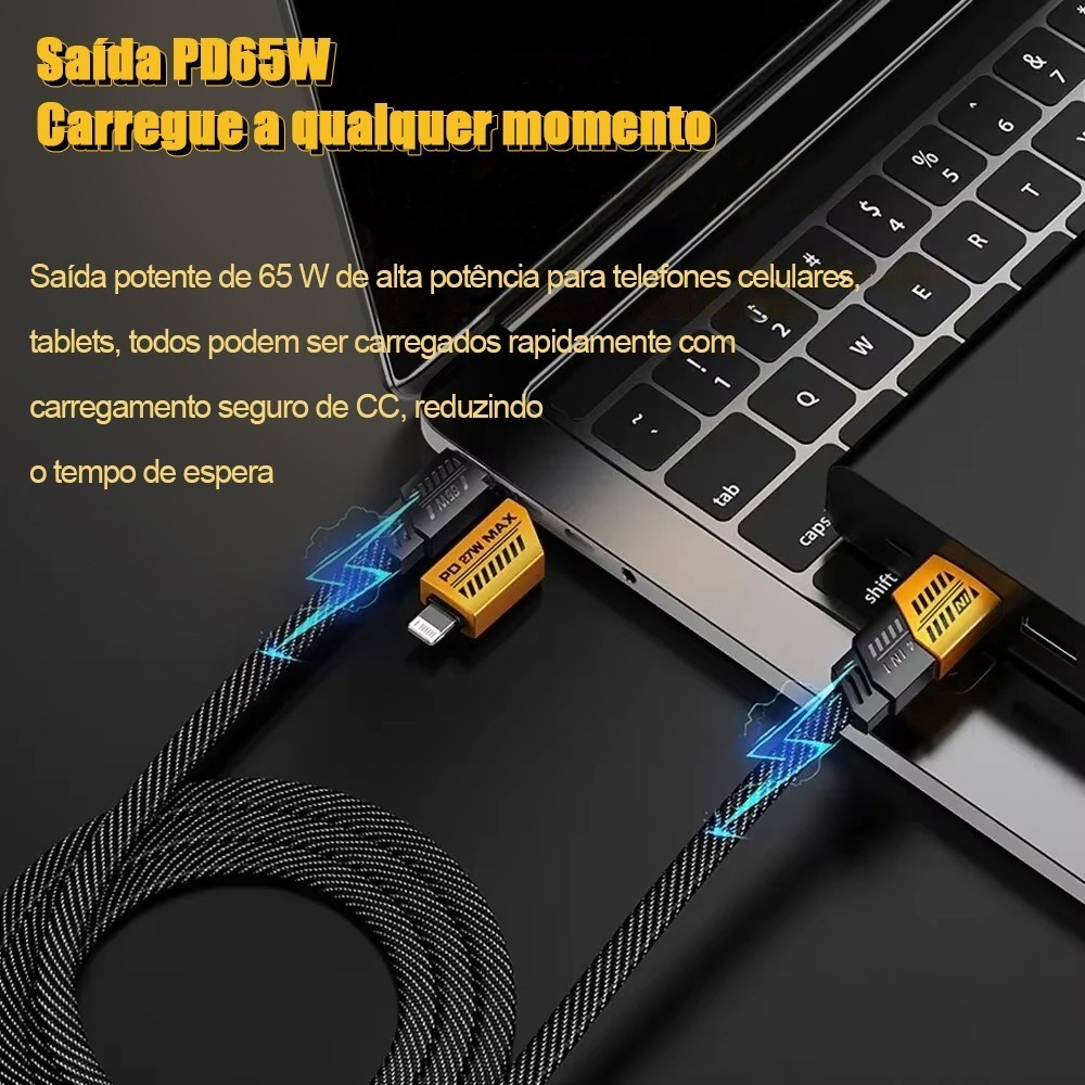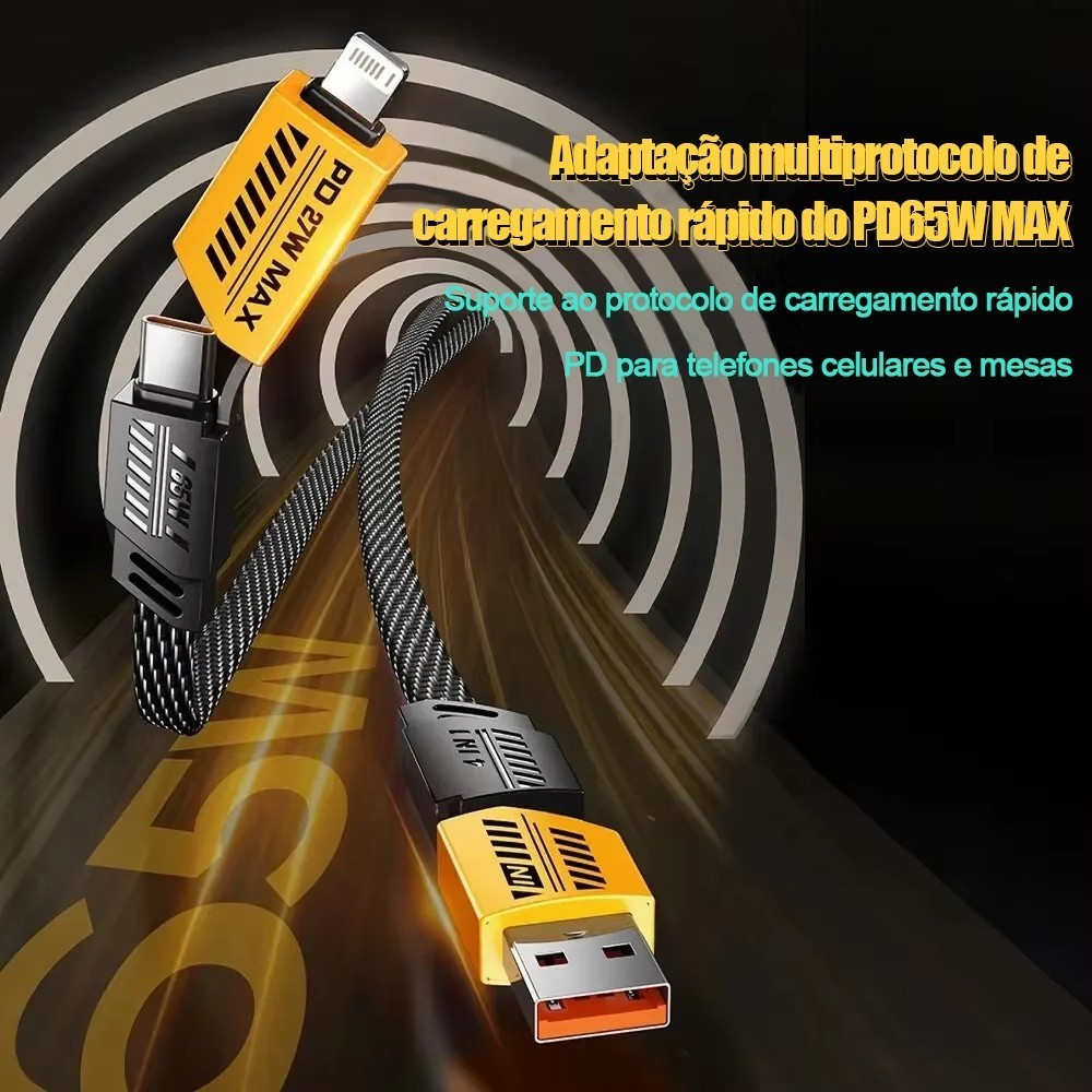 Cabo Carregamento Rápido 4 em 1 TURBO 65W/27W Cabeça de Metal Revestimento de Nylon 1 metro