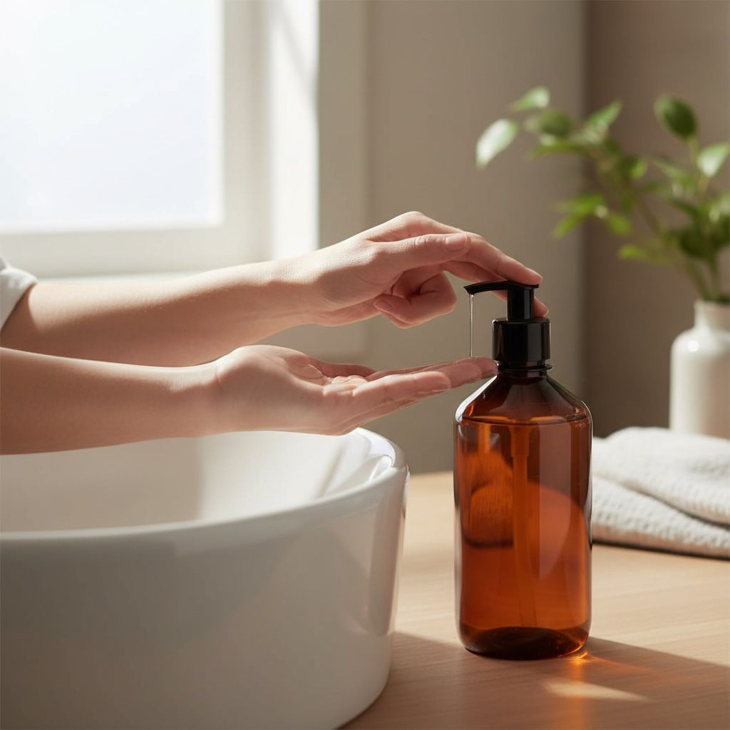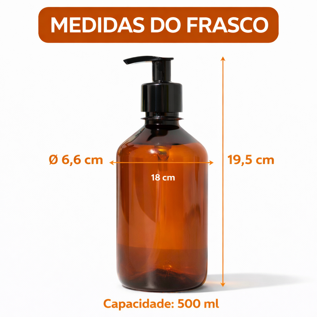 Kit 3 Frasco Âmbar 500ml com Válvula Pump para Cosméticos e Higiene Shampoo Condicionador Sabonete e Outros