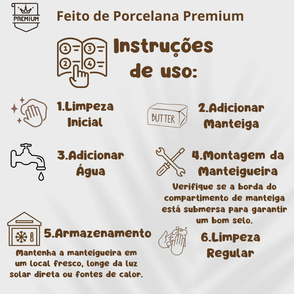 Manteigueira Francesa Porta Laticínios Cozinha de Porcelana 200g