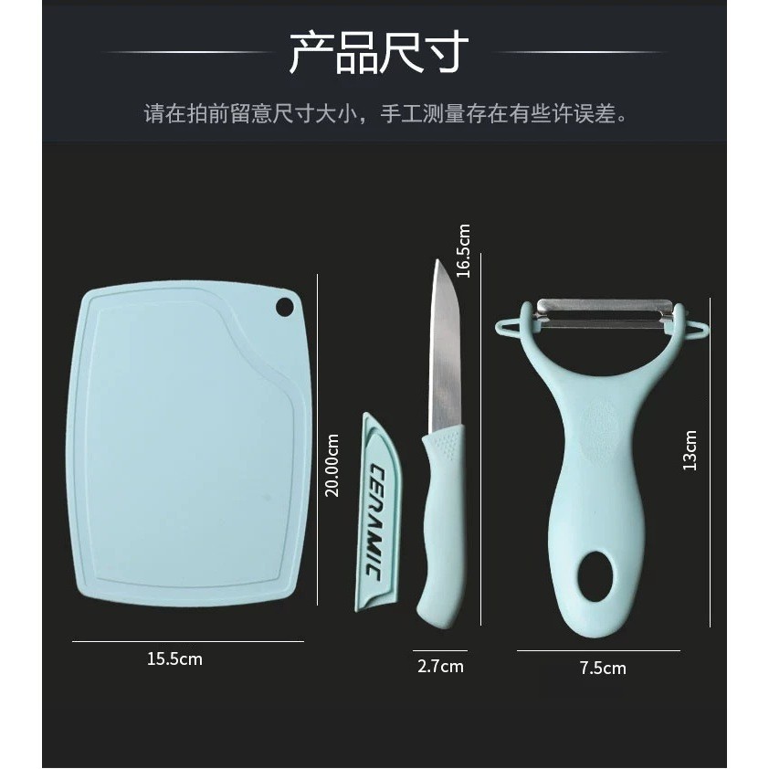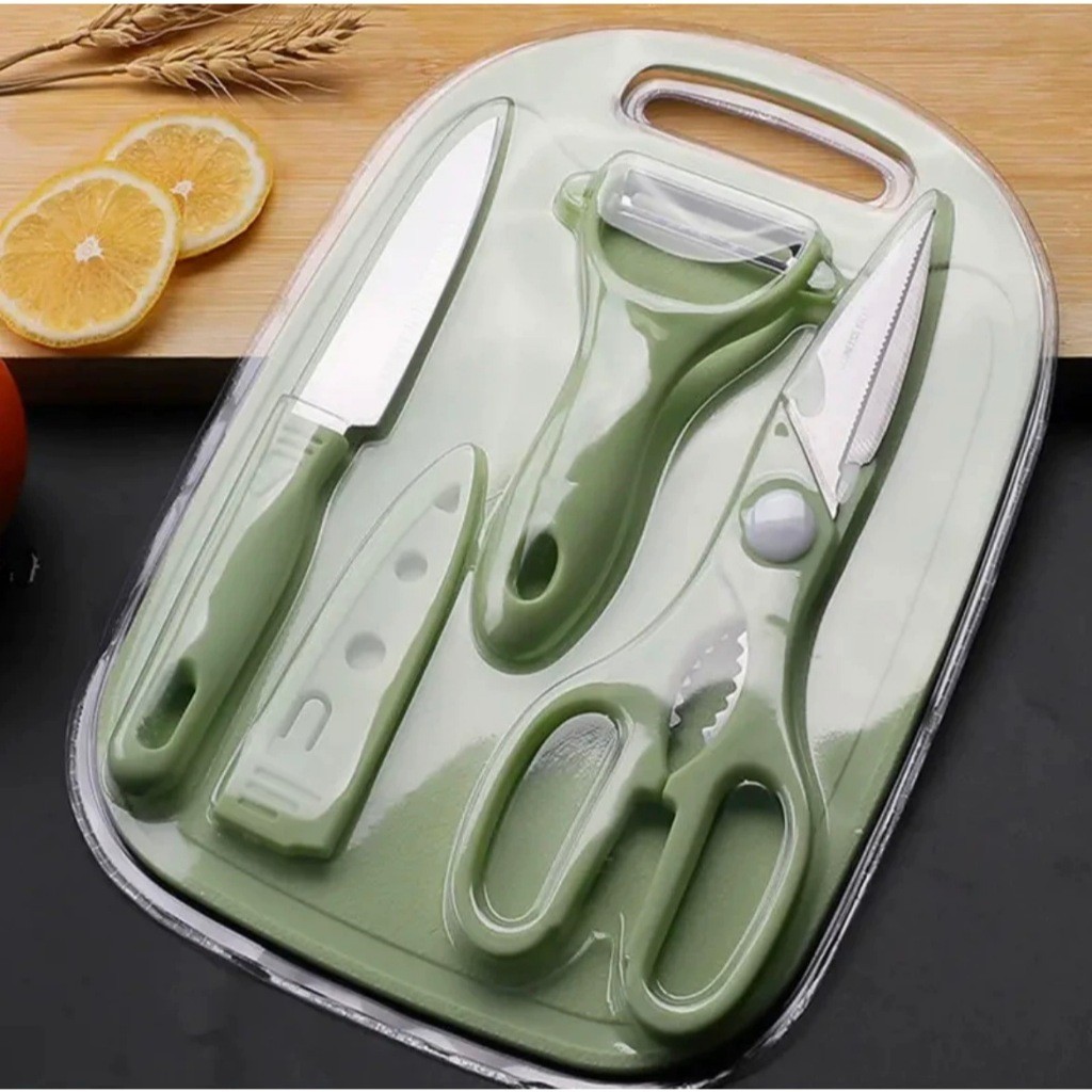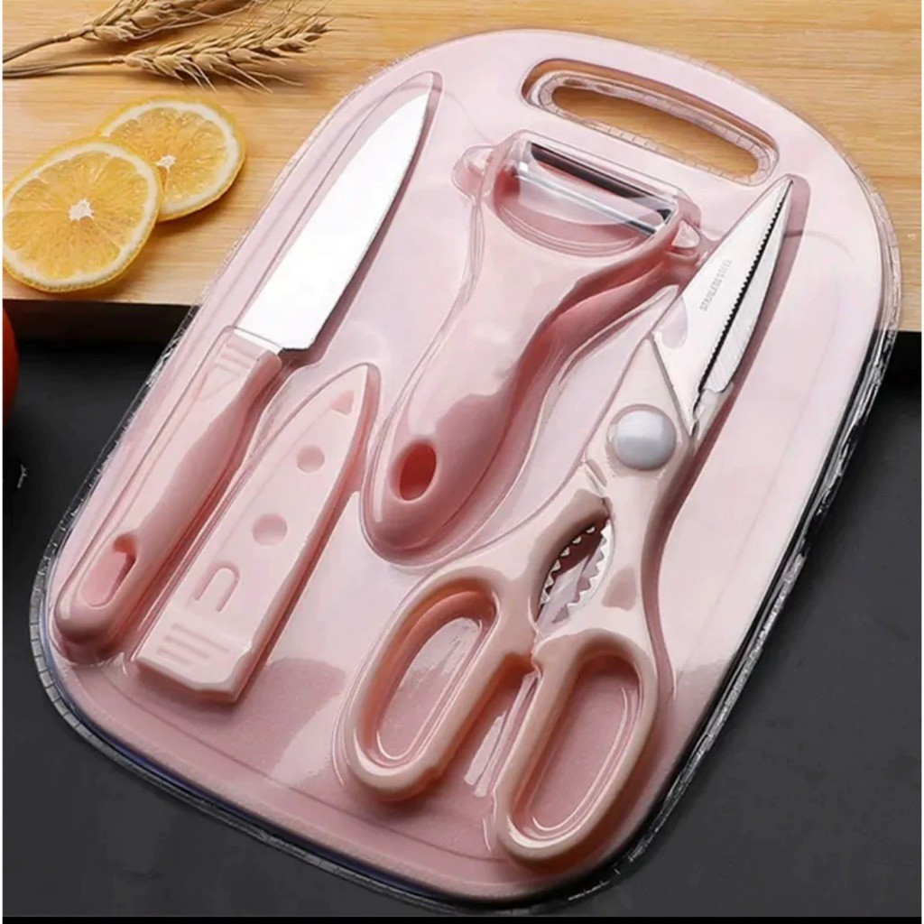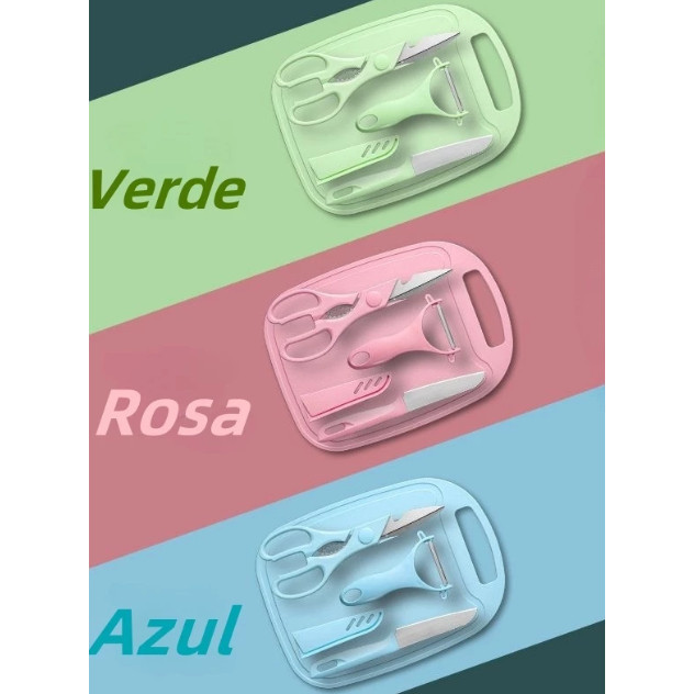 Kit De Utensílios De Cozinha 4 Peças Faca Tesoura Descascador Tábua Culinária
