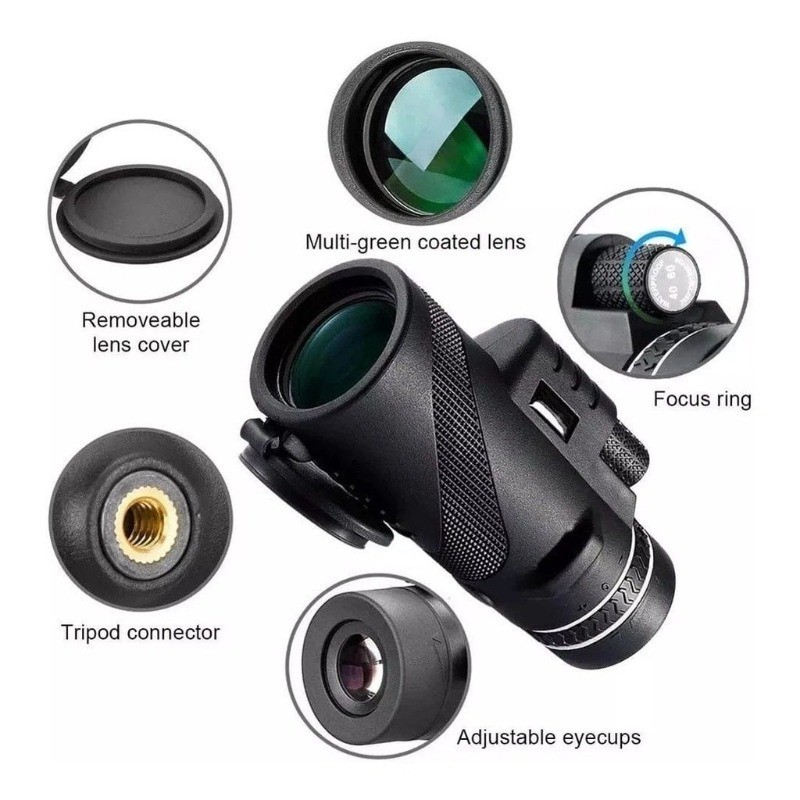 Monóculo Luneta Profissional Tático Telescópio Longo Alcance Portátil Zoom C/ Tripé e Suporte Para Celular 40x60