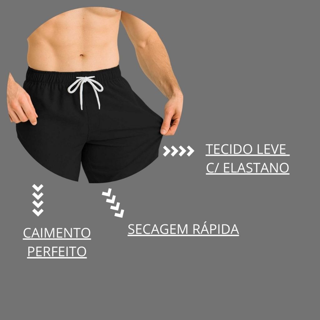 Short Masculino Tactel Tecido Leve Seca Rápido Piscina Praia Coqueiro