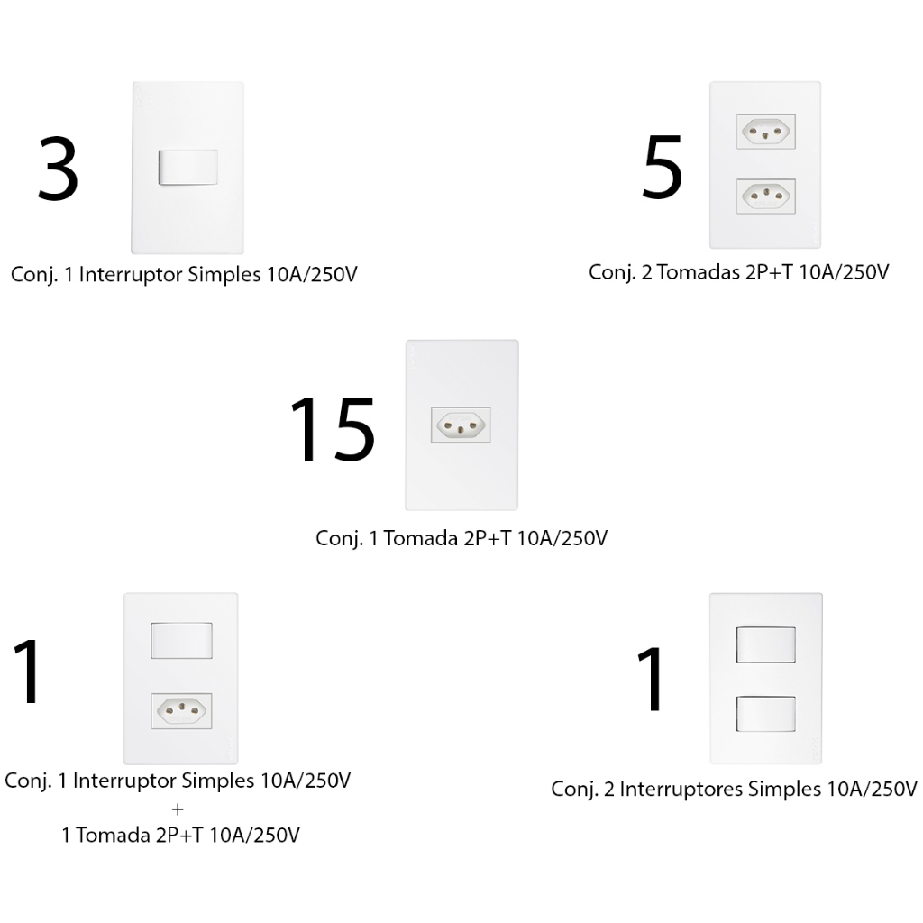 Kit Elétrico Modular 25 Peças Tomadas e Interruptores walma 110V/220V 10A casa completa