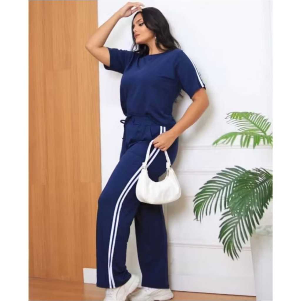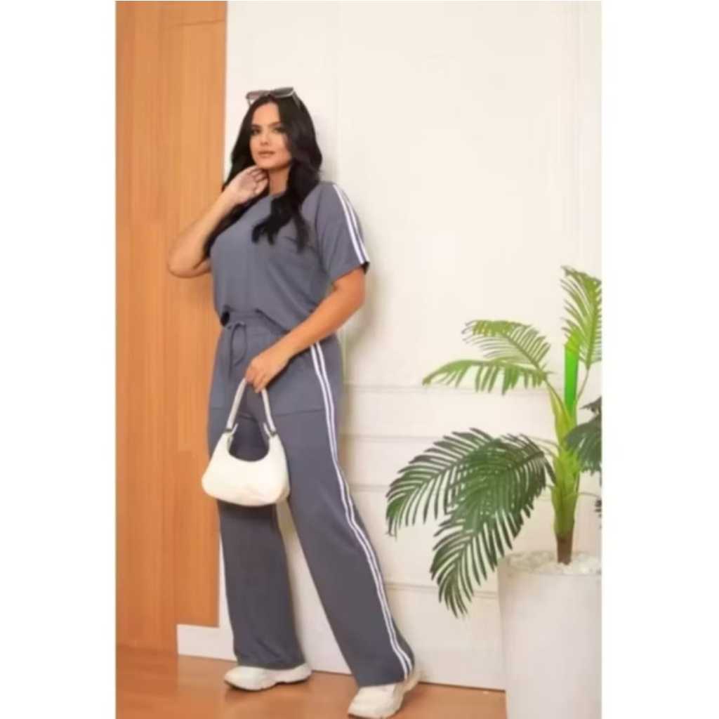 Conjunto Femenino Calça E Blusa Com Listras Laterais Casual confortável Look Versáteis Moletinho