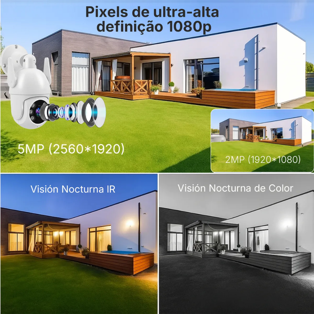 Kit 4 Segurança Com Monitor Gravador Nvr 360° WIFI Inteligente à Prova