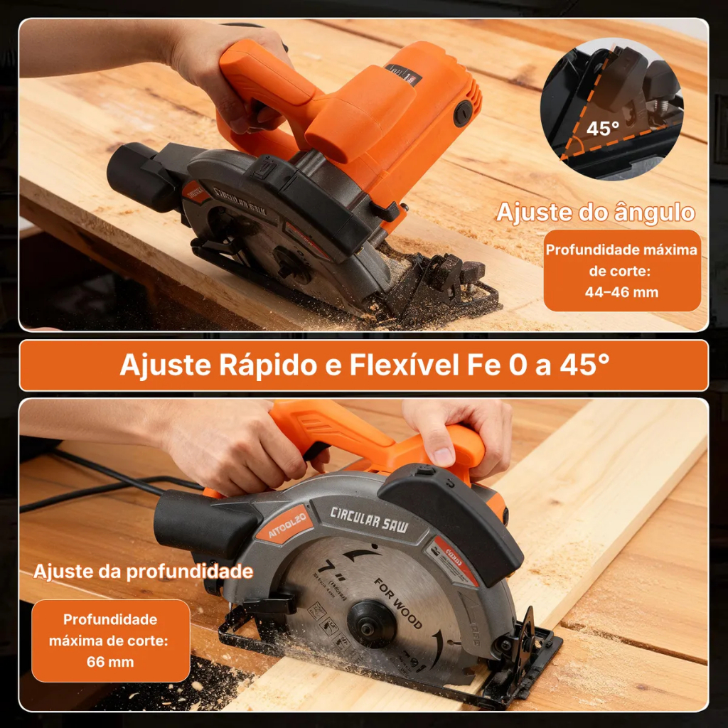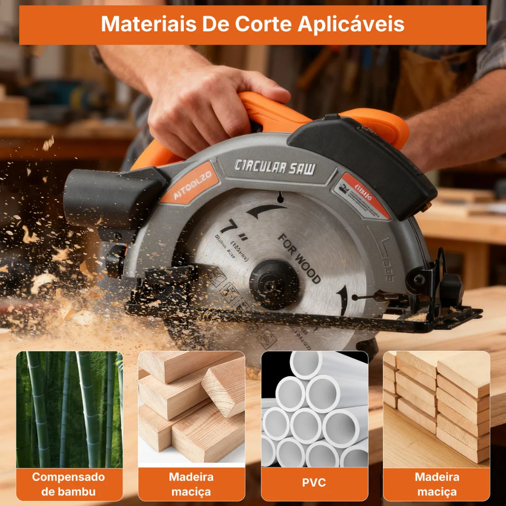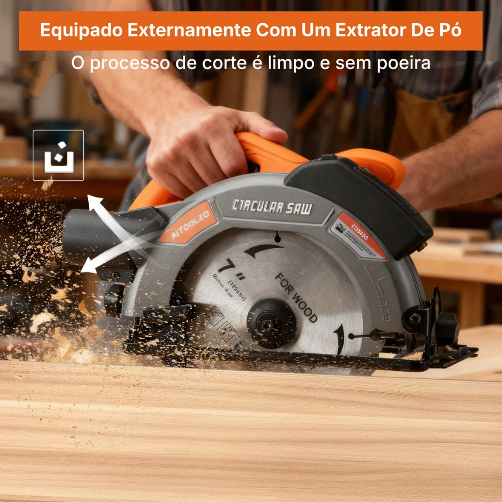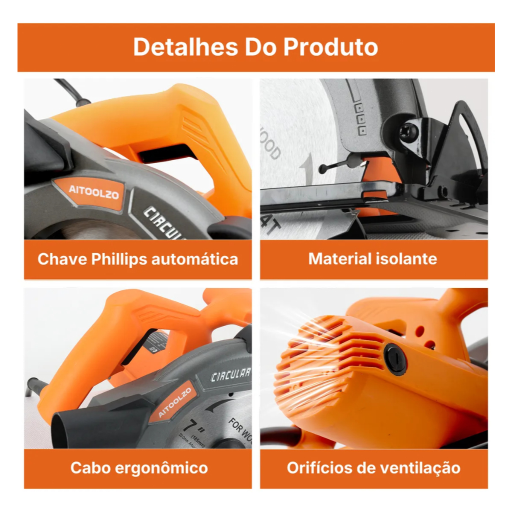 Serra Circular Elétrica 1650w 185mmCom Guia Laser e Saída de Exaustão Aitoolzo Laranja
