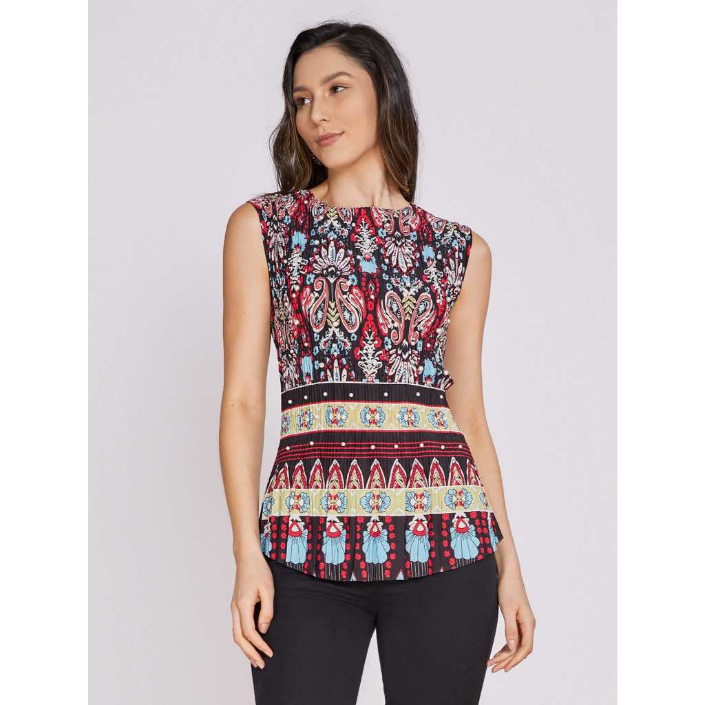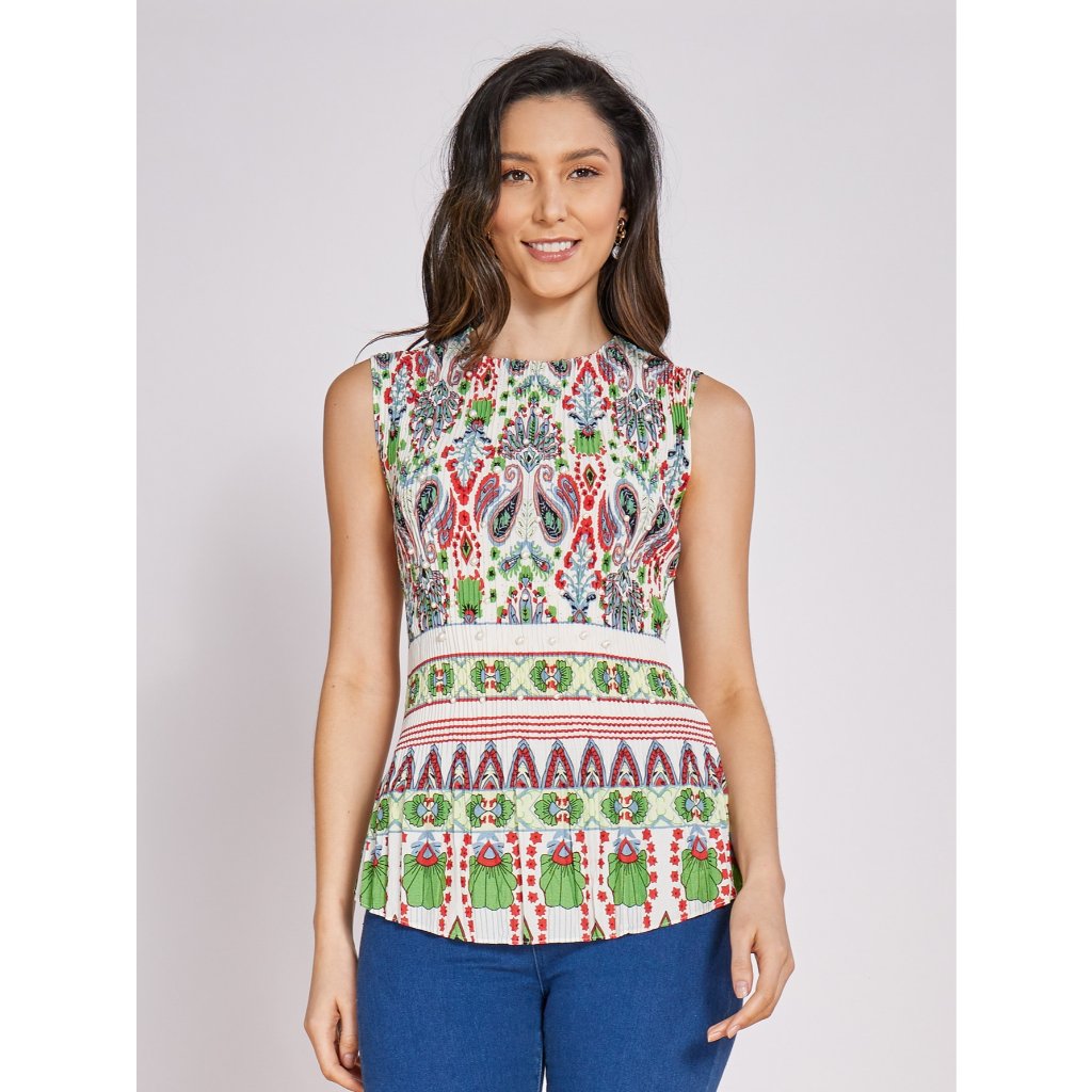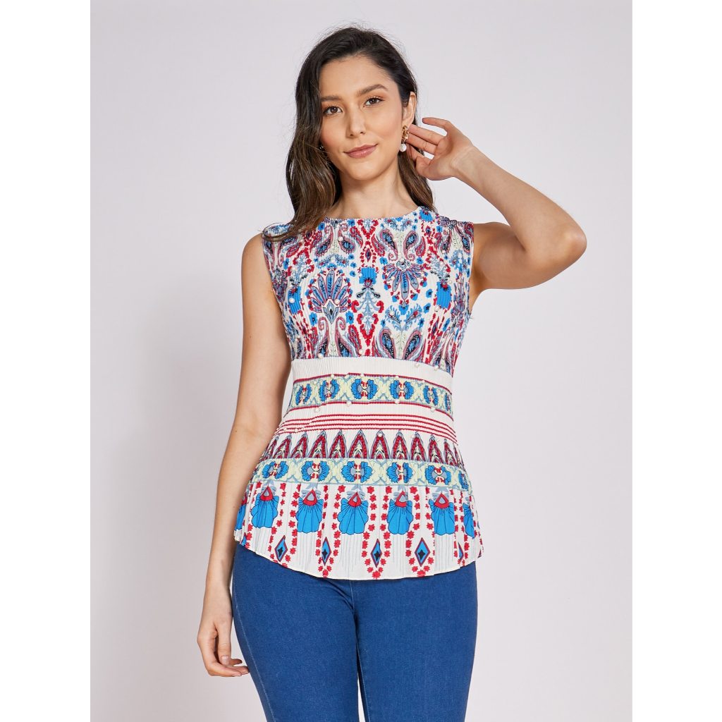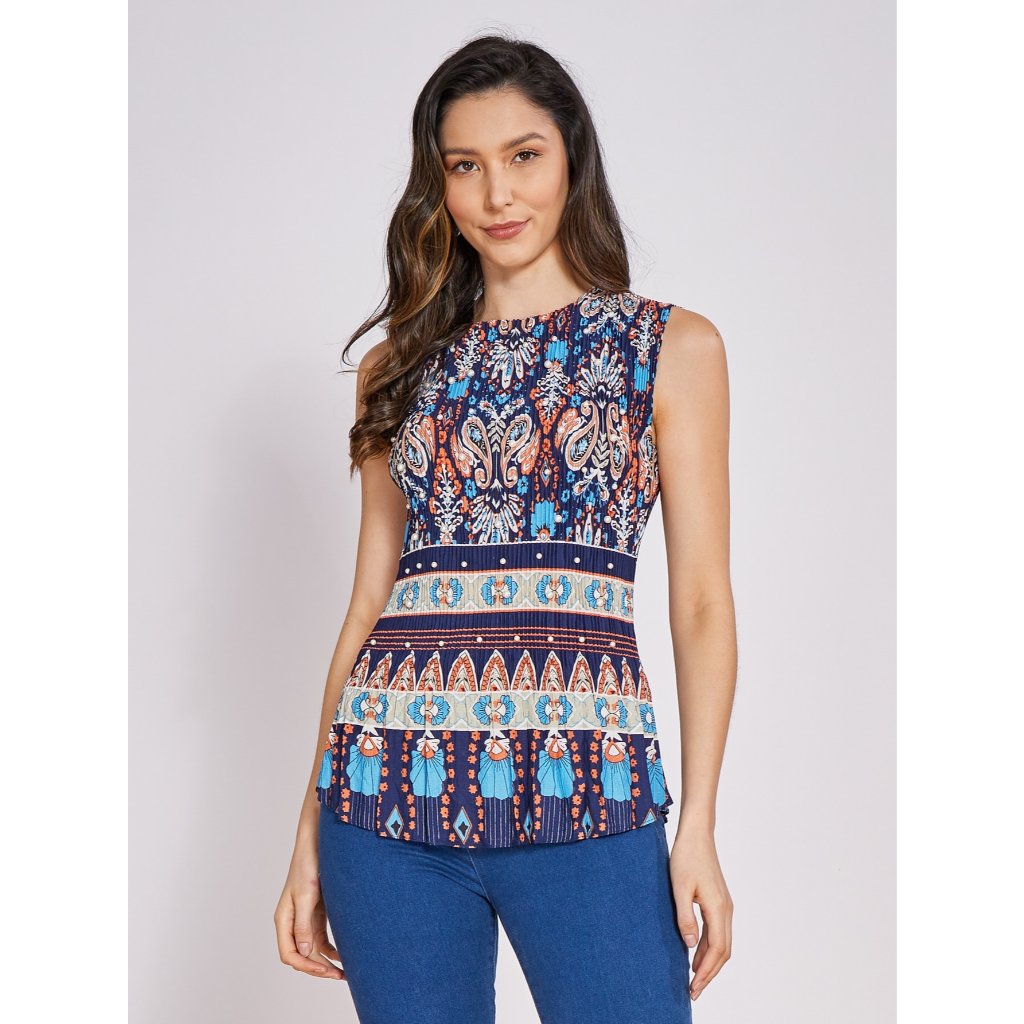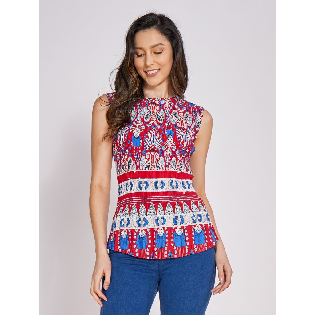 Regata Feminina Canelada plissada elegante Moda e pérola com decoração de pérolas