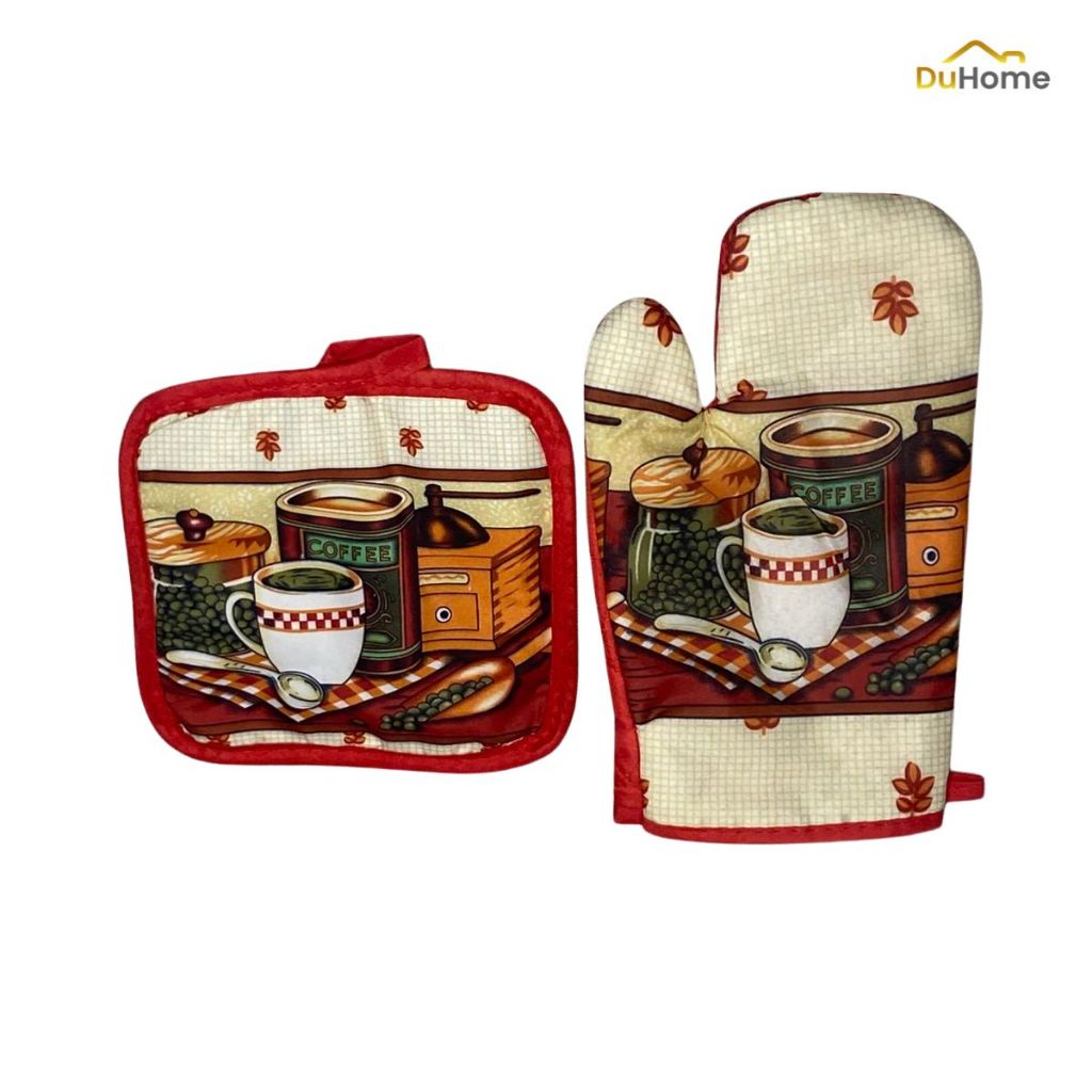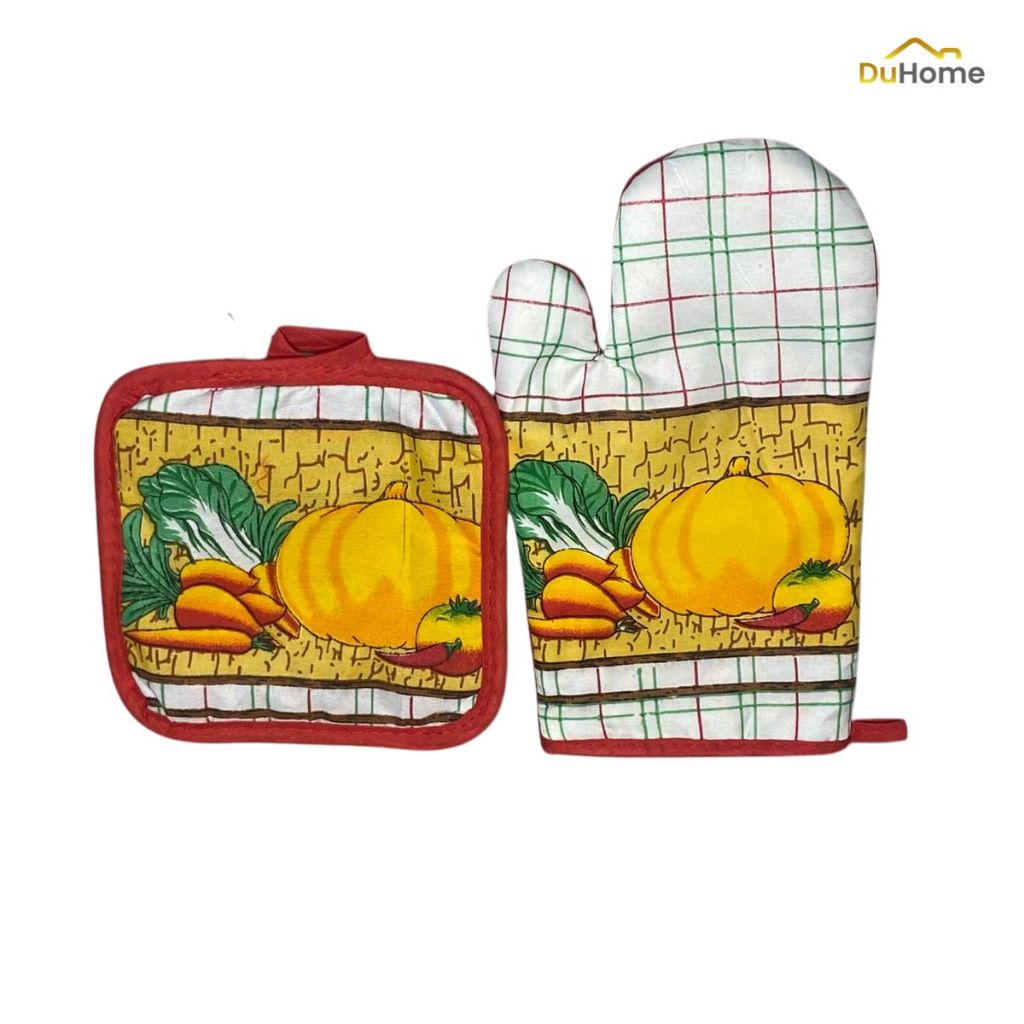 Conjunto 2pcs Luva Térmica Com Pegador Descanso de Panela Forno Fogão Cozinha Resistente Duhome