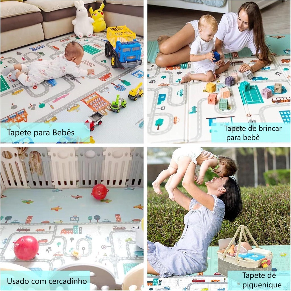 Tapete Bebê Tatame Infantil Dupla Face 2x1.8M | Antiderrapante, Macio e Fácil de Limpar