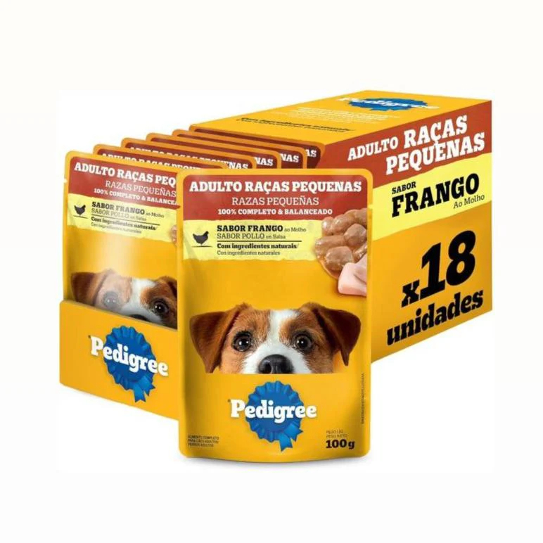 Pack Ração Úmida Pedigree Cães Adultos Raças Pequenas Sachês 100g - 18 Unidades - Escolha o Sabor