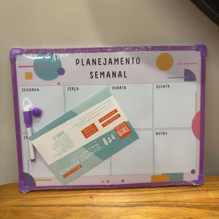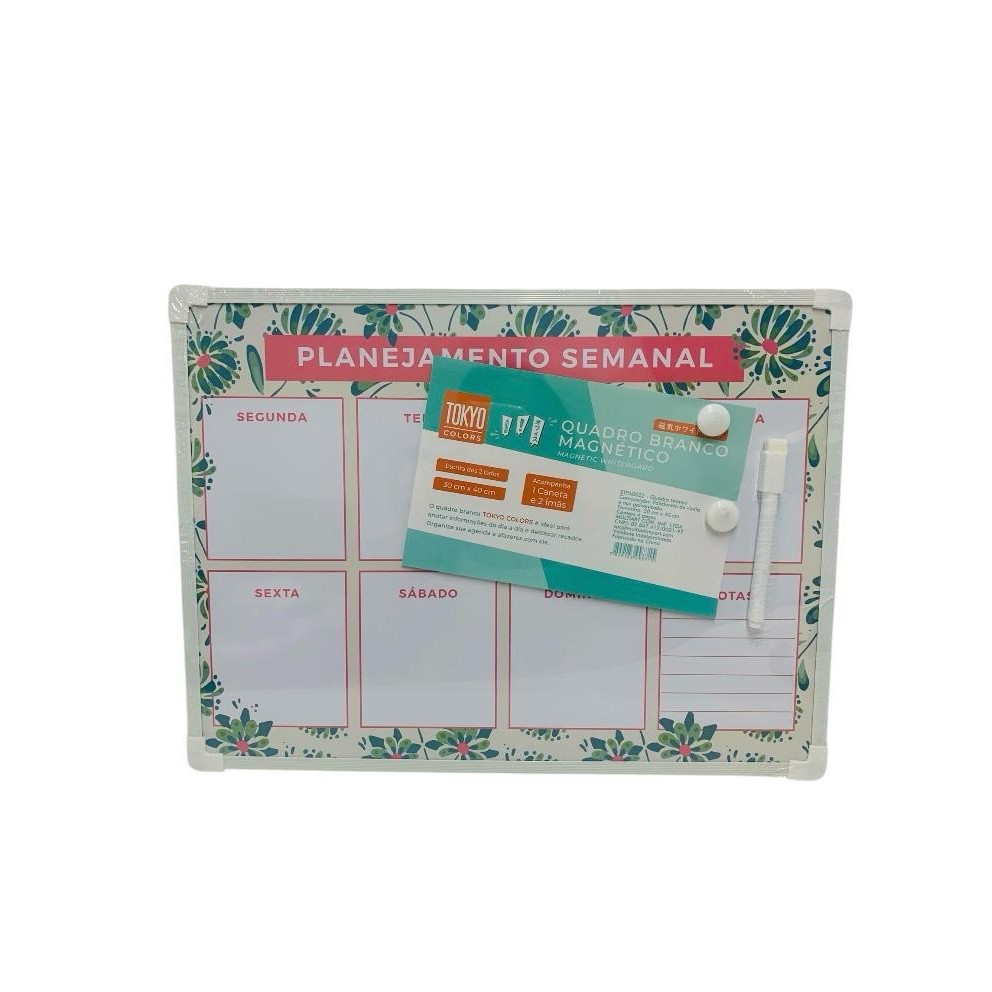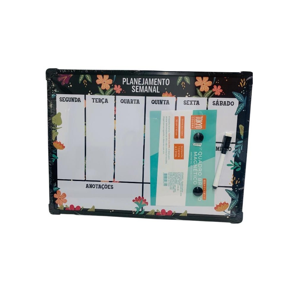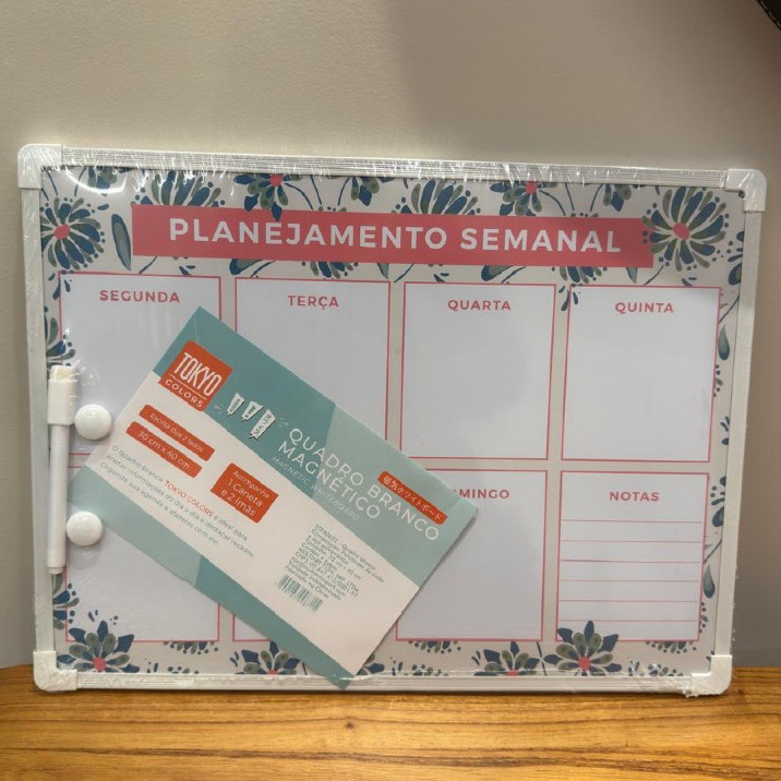 Quadro Branco Planner Semanal Magnético 30x40 Lousa De 2 Lados c/ Caneta Ímãs Colorido Corrente