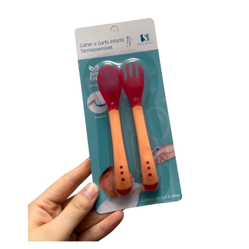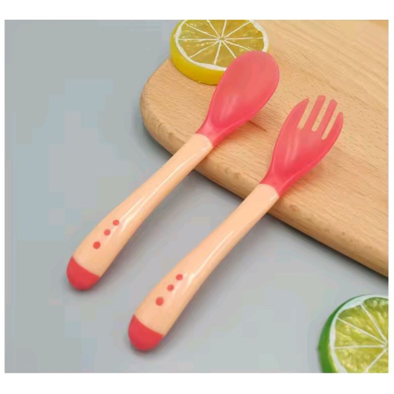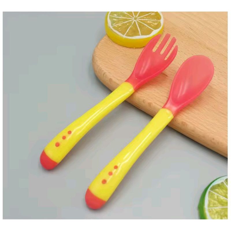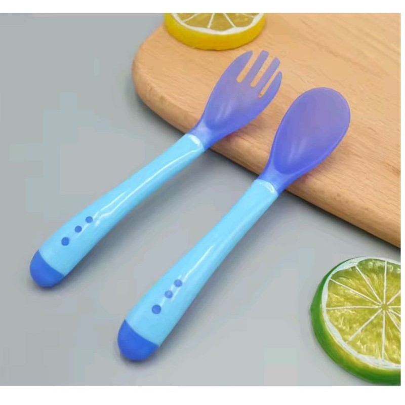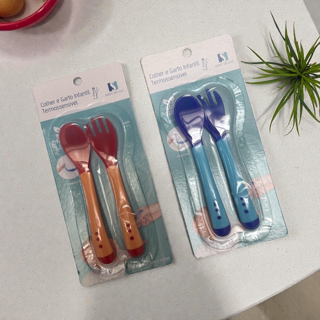 Kit Talher Infantil Silicone Termossensível Colher e Garfo para Bebê Muda Cor
