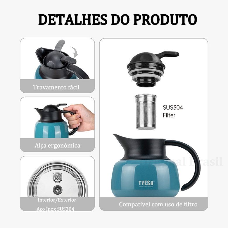 TYESO Cafeteira Térmica 750ml com Filtro - Aço Inoxidável Mantém Quente por Horas para Escritório e Casa