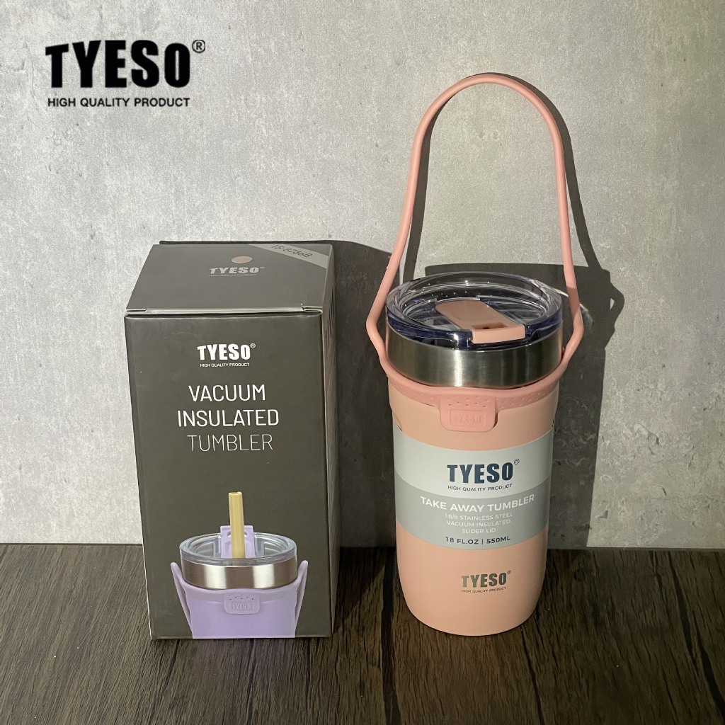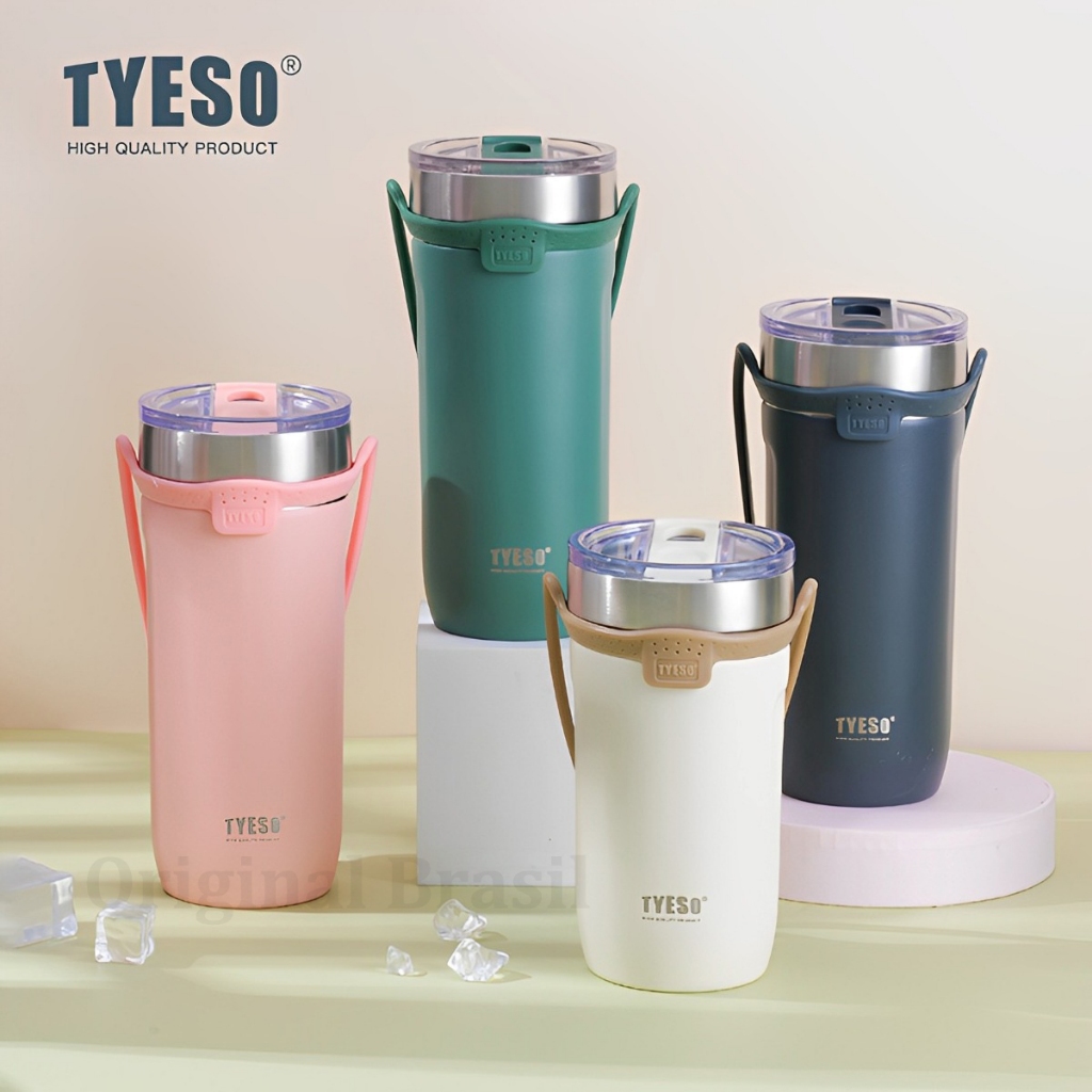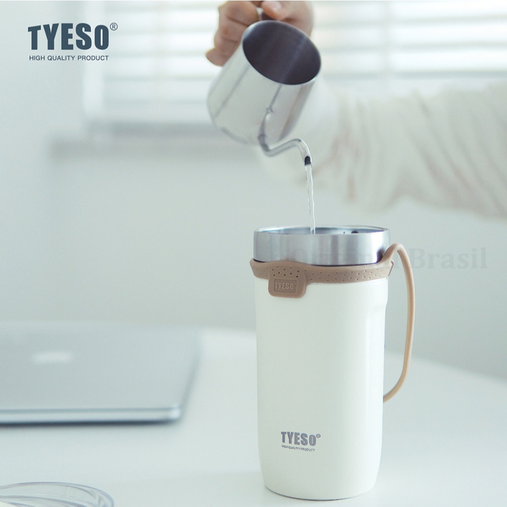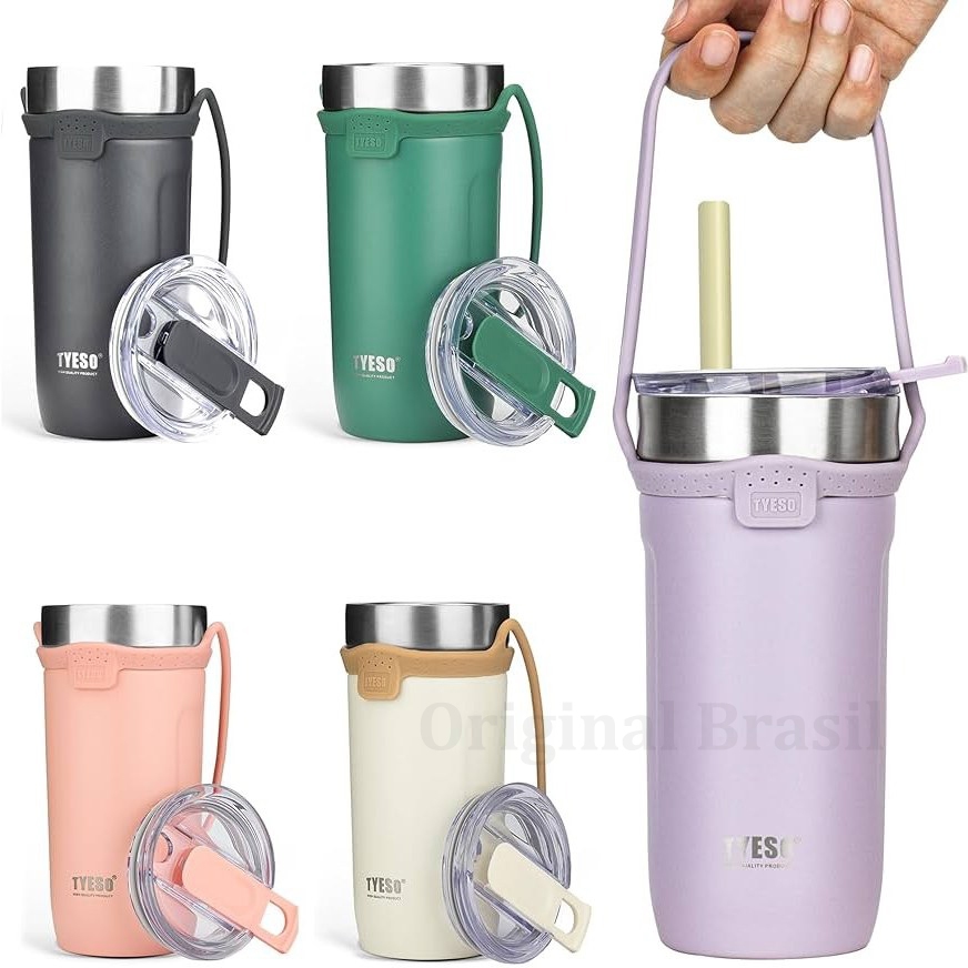 TYESO Copo Térmico 550ml com Alça de Silicone Removível Aço Inox 304 Mantém 12h Quente/Frio Para Academia e Viagem