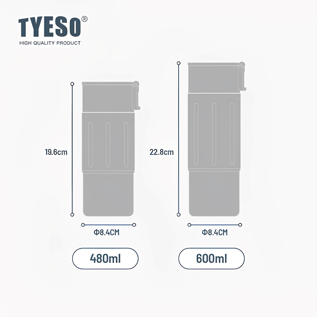 TYESO Copo Térmico 600ml Aço Inox Mantém 12h Quente&Gelado Fácil de transportar pequeno e leve