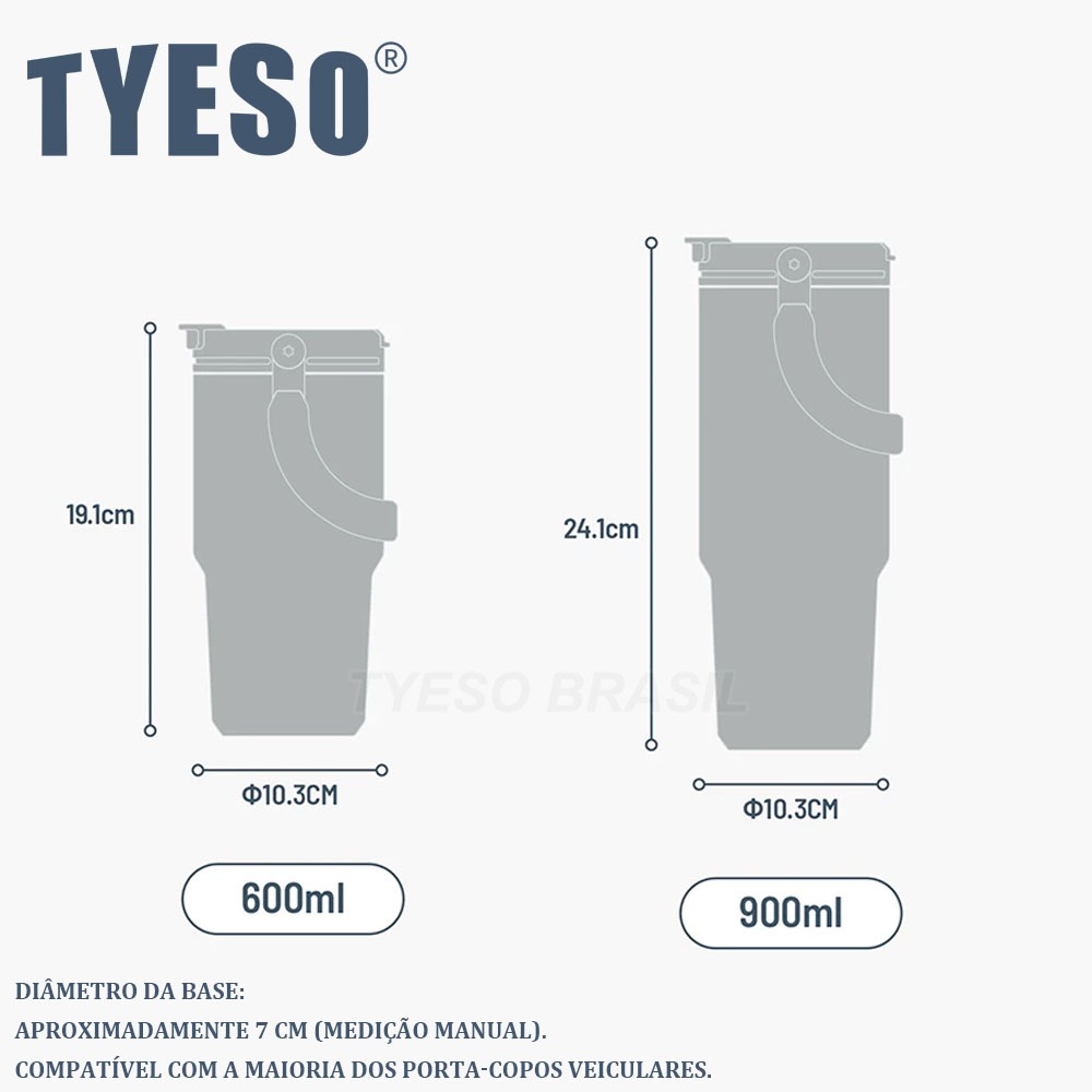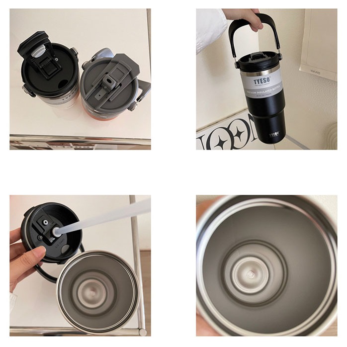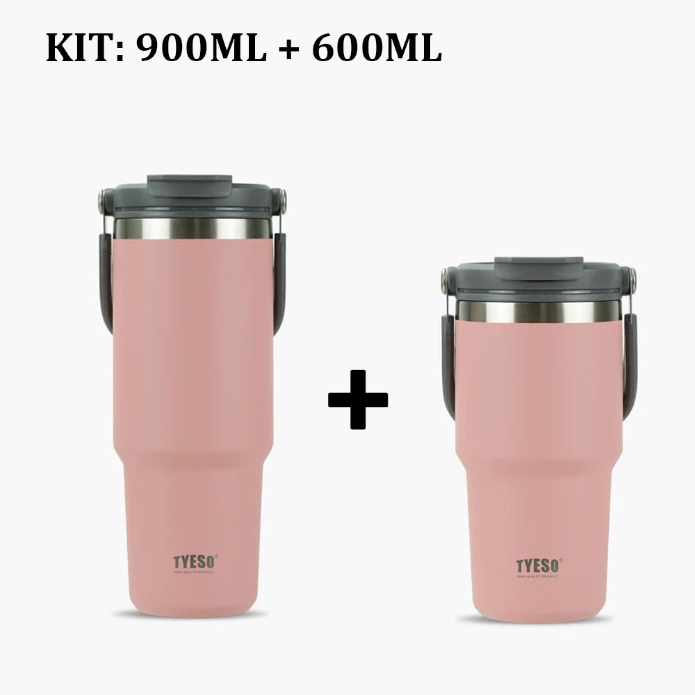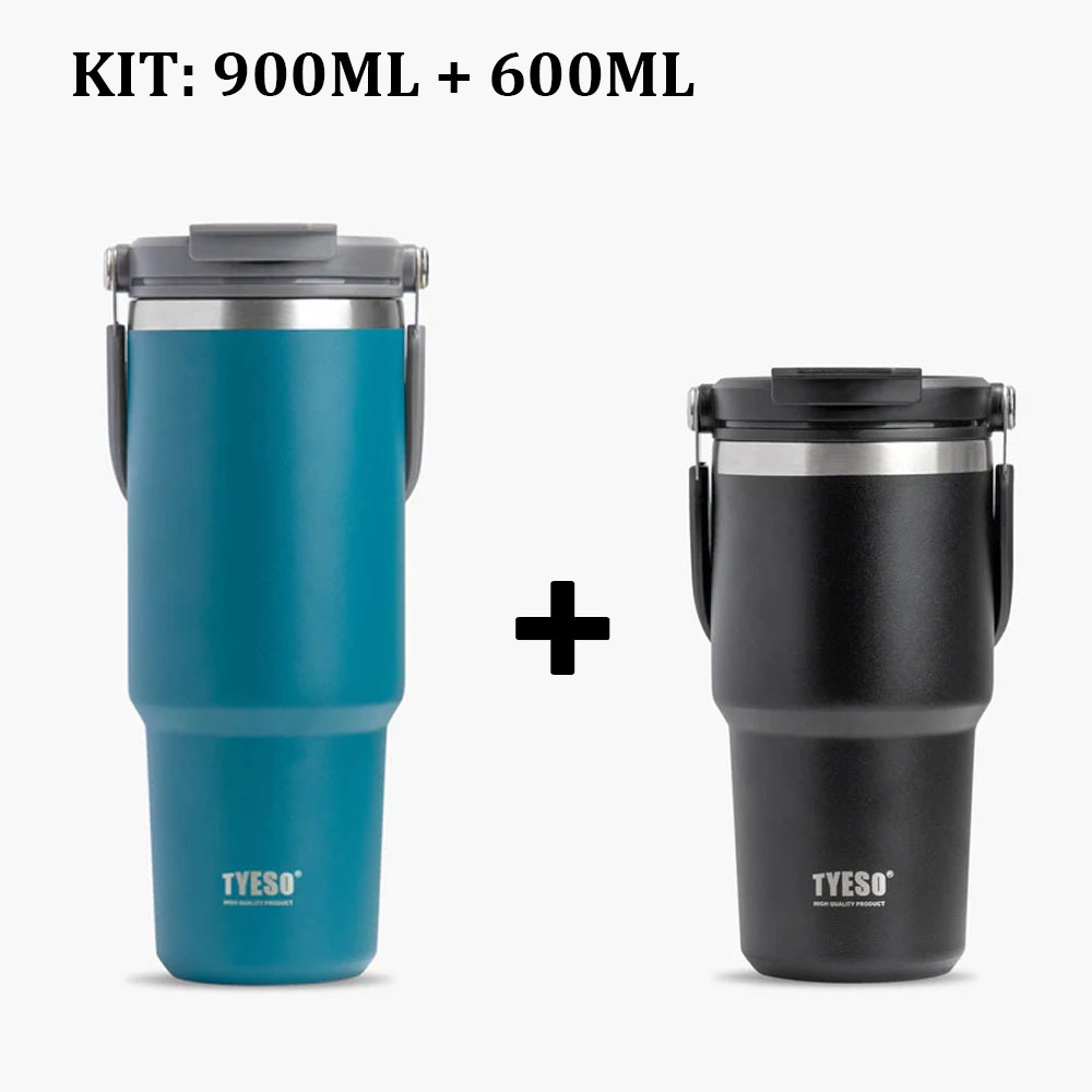 TYESO Garrafa Térmica de Aço Inoxidável Copo para Carro 900ml+600ml 2 Formas de Beber Ótima Opção de Presente