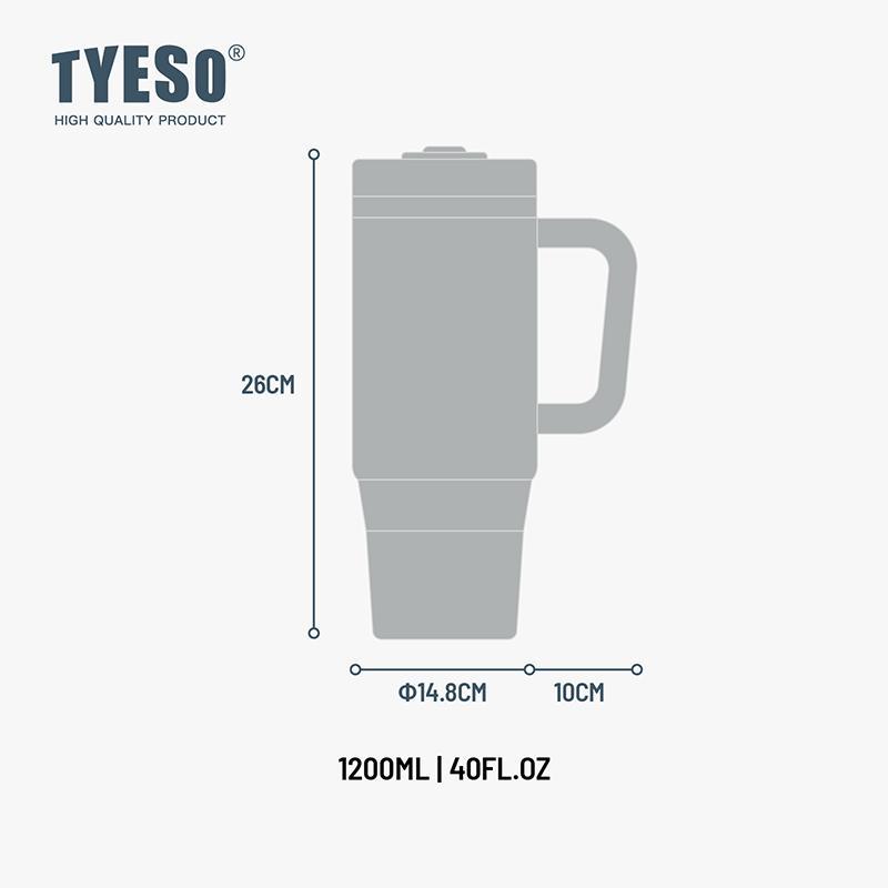 Copo Térmico Inox 304 TYESO 1200ml com Canudo e Tampa Vedação - Garrafa Térmica Portátil Dupla Camada com Alça