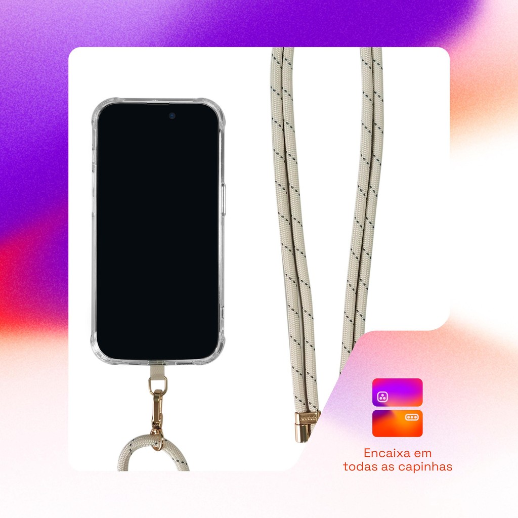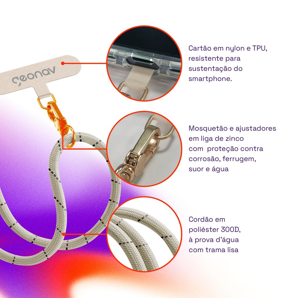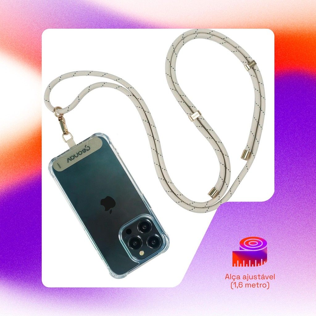 Cordão Para Celular Pescoço Universal Cru Com Cinza Geonav