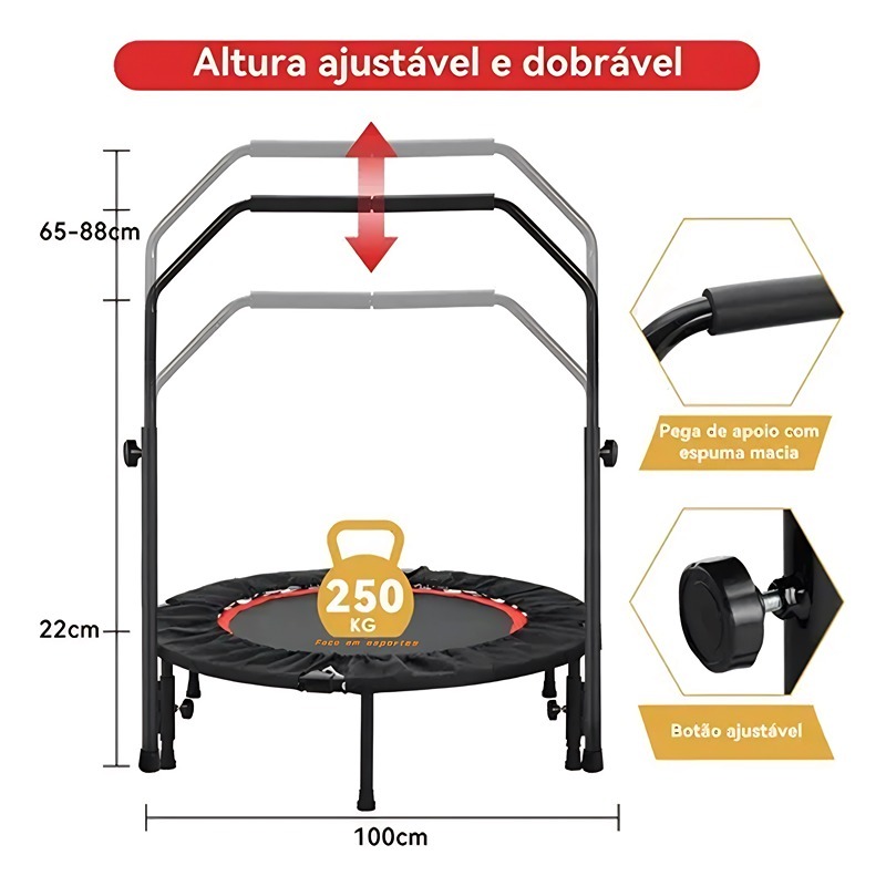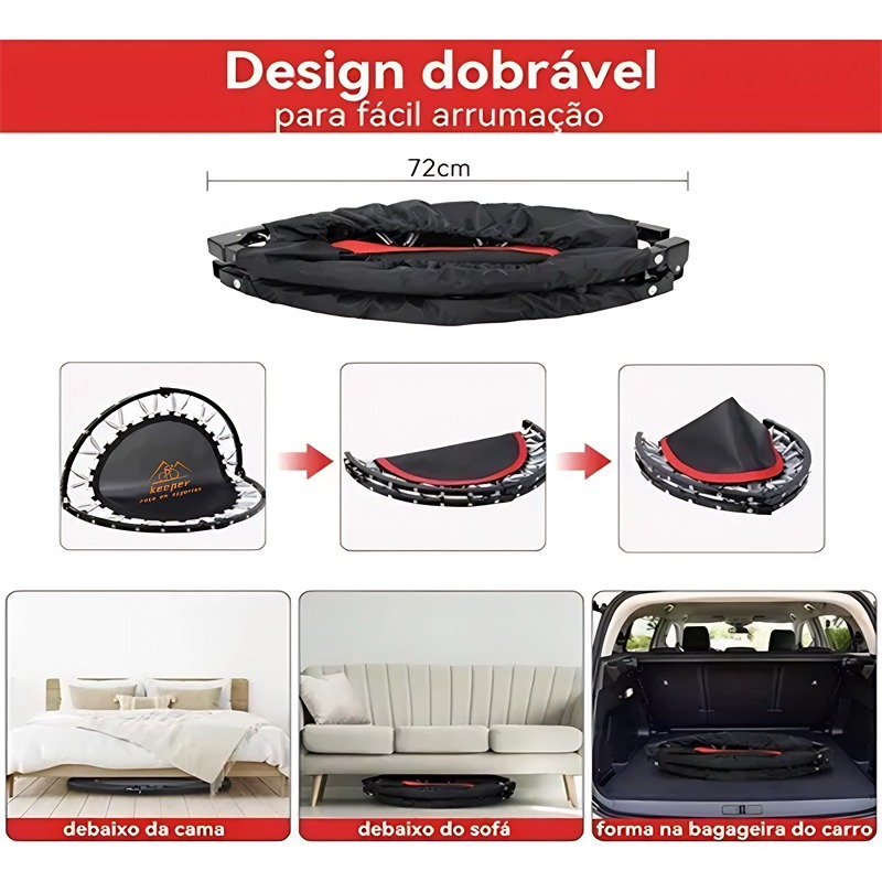 Mini Trampolim Keeper 250kg, Para Exercícios em Casa, 24 Molas Fortes, Condicionamento Físico