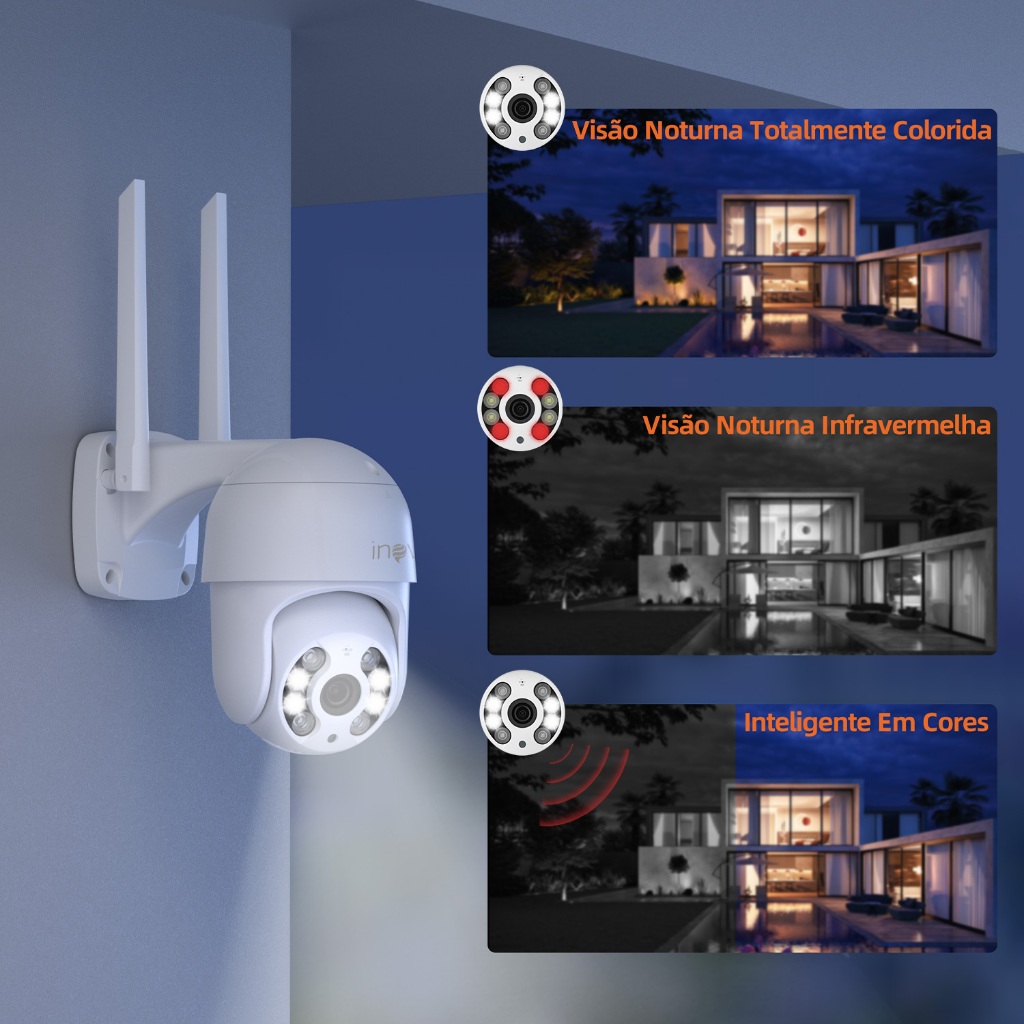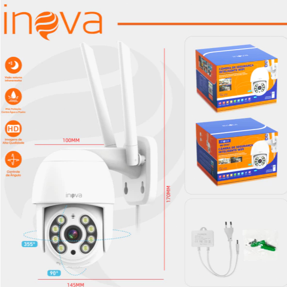 INOVA Câmera segurança Prova D'água sem fio gira 360° HD 1080P IP66 APP YOOSEE 110-220V ICSEE