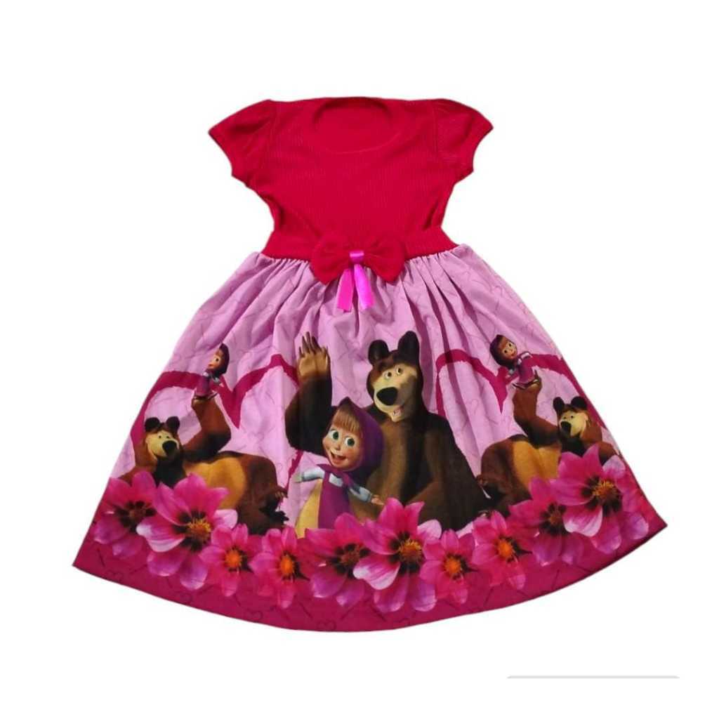 Vestido infantil temático menina e o Urso