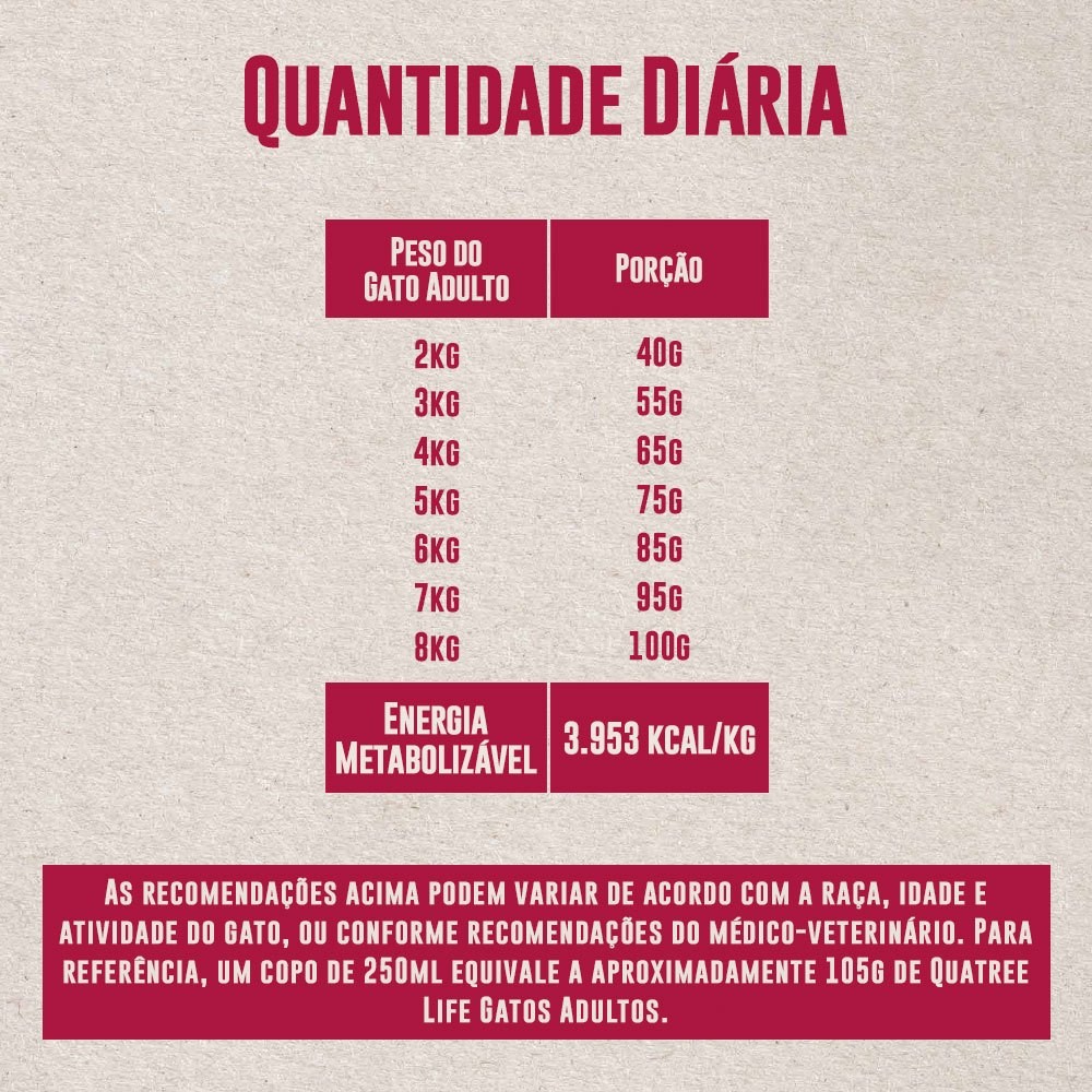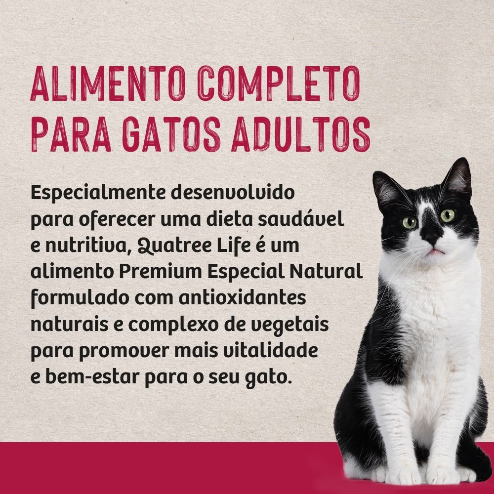 Quatree Life para Gatos Adultos Sabor Salmão e Arroz 1KG (Não Castrado)