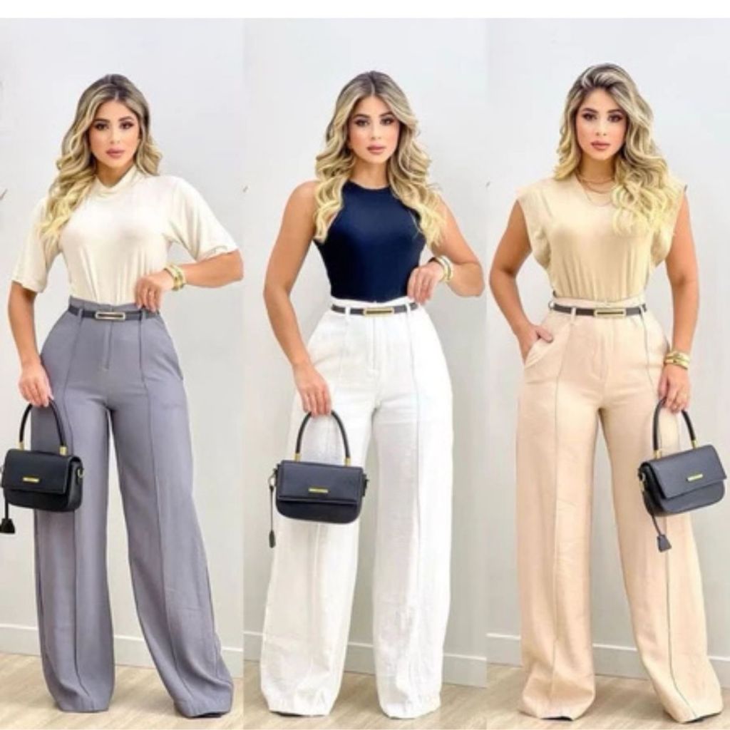 Kit 2 Calça Alfaiataria PREMIUM Com Ziper Lateral Cintura Alta Com Bolso e Cinto PROMOÇÃO do P ao GG
