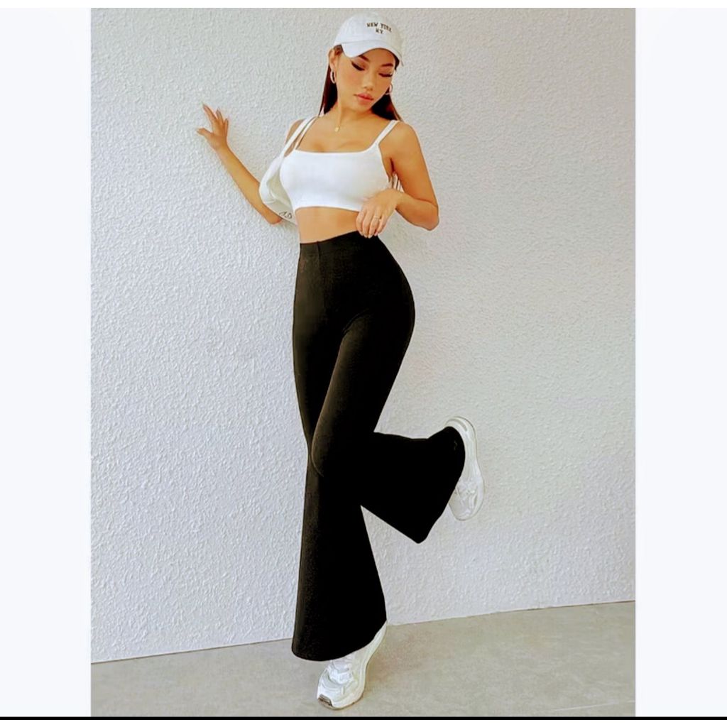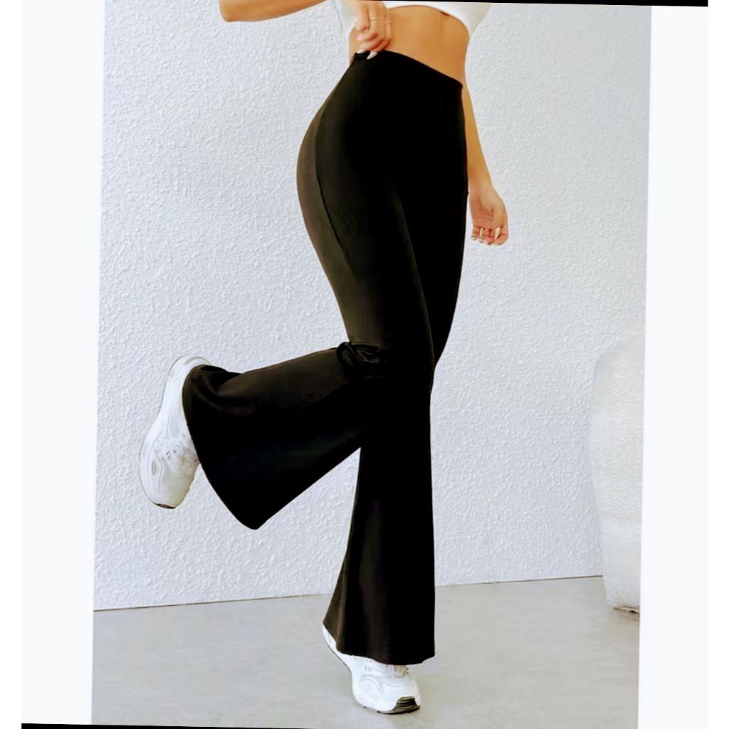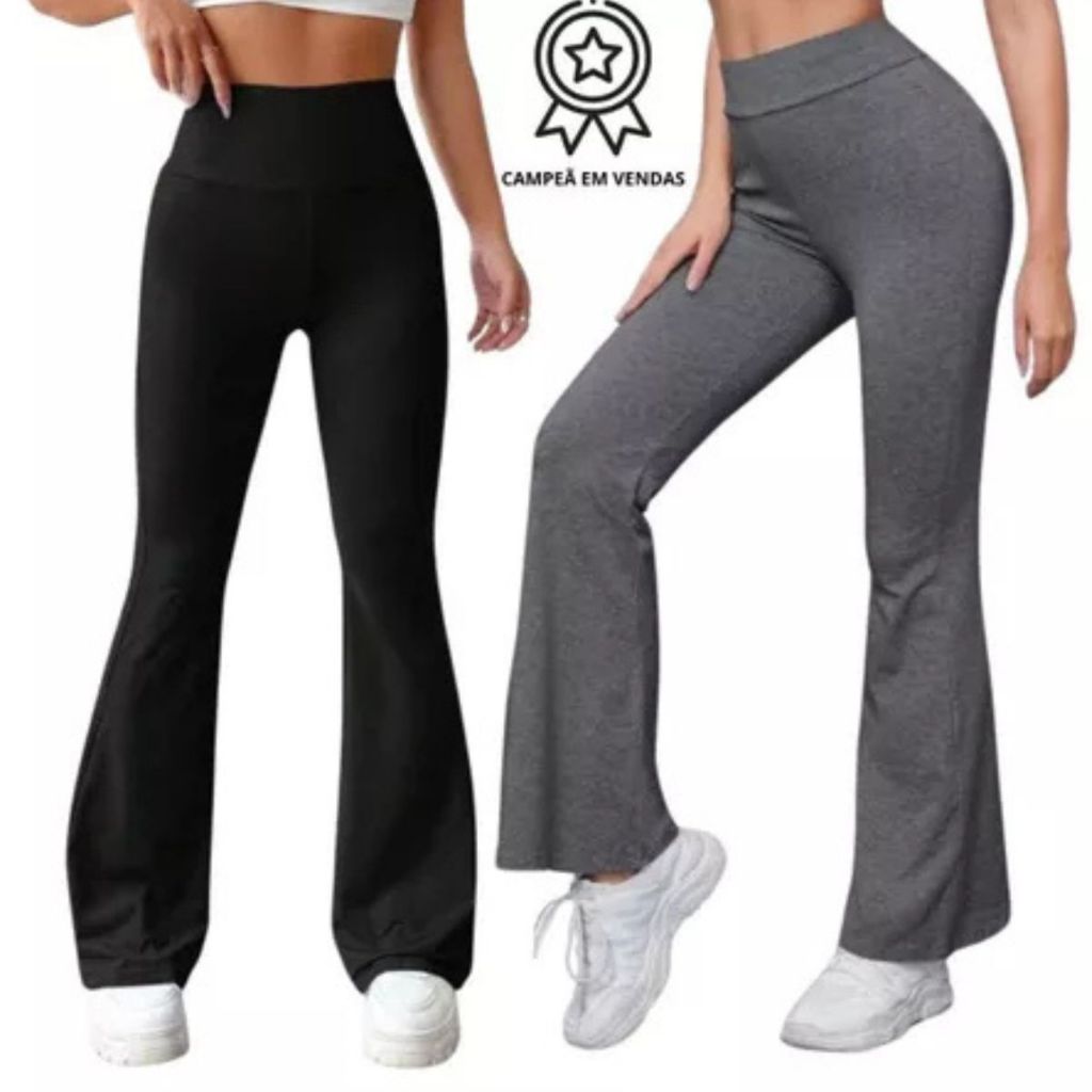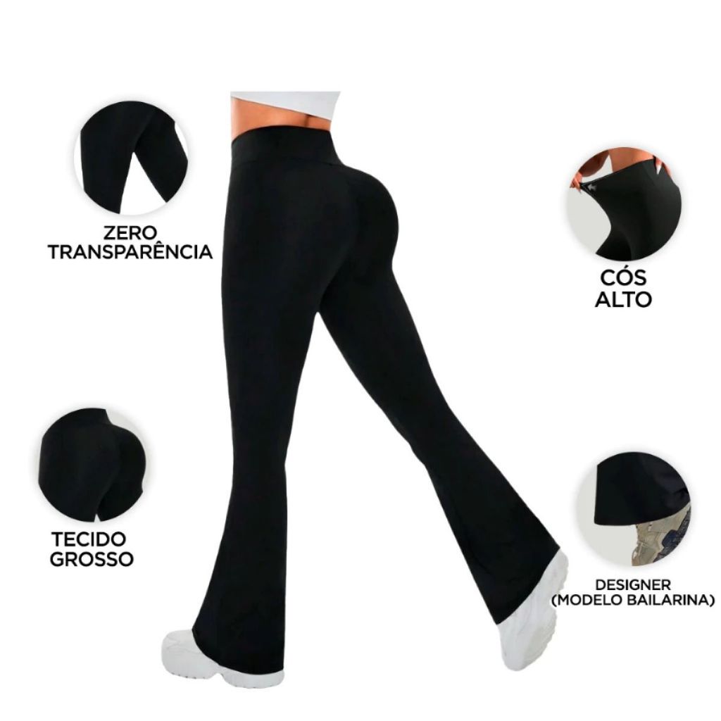 Kit 2 Calça Legging Flare Bailarina Suplex Cintura Alta Modela Bumbum Feminina Zero Transparência