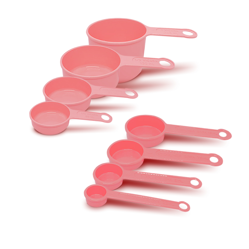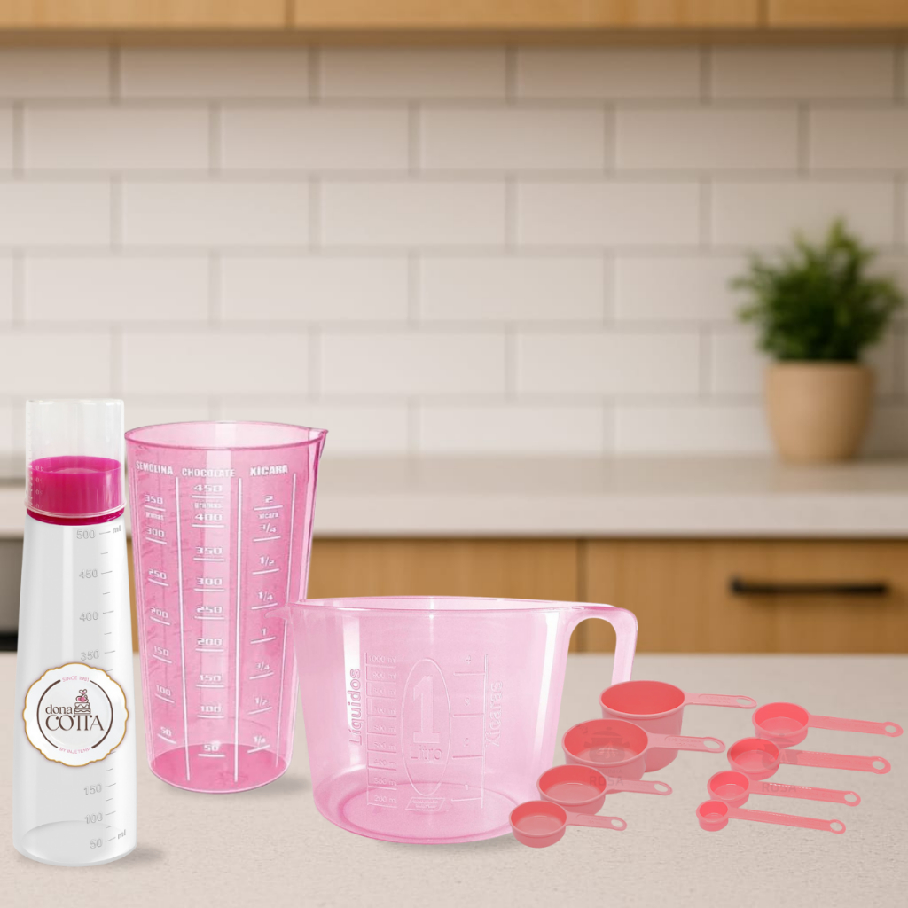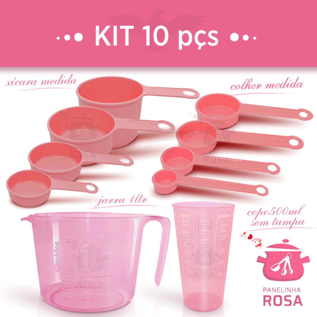 kit conjunto Enxoval de casa Cozinha 11 peças rosa para confeiteiros Jarra, Copo, Colheres e Regador Medida