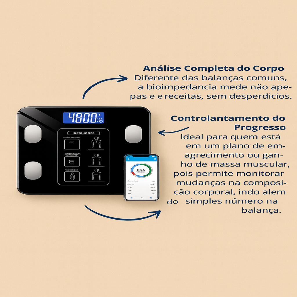 Kit 2 Balanças digital Bioimpedância e Cozinha Fitness Academia Dieta Nutrição