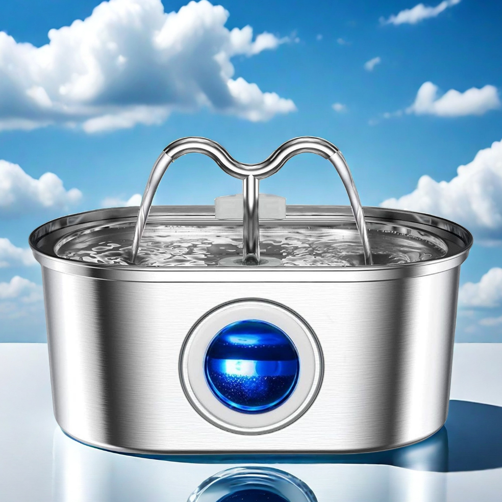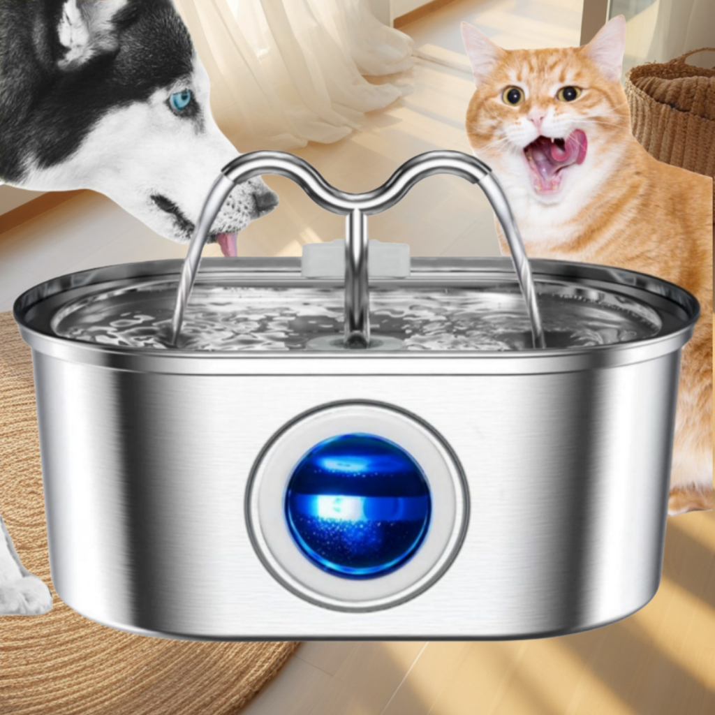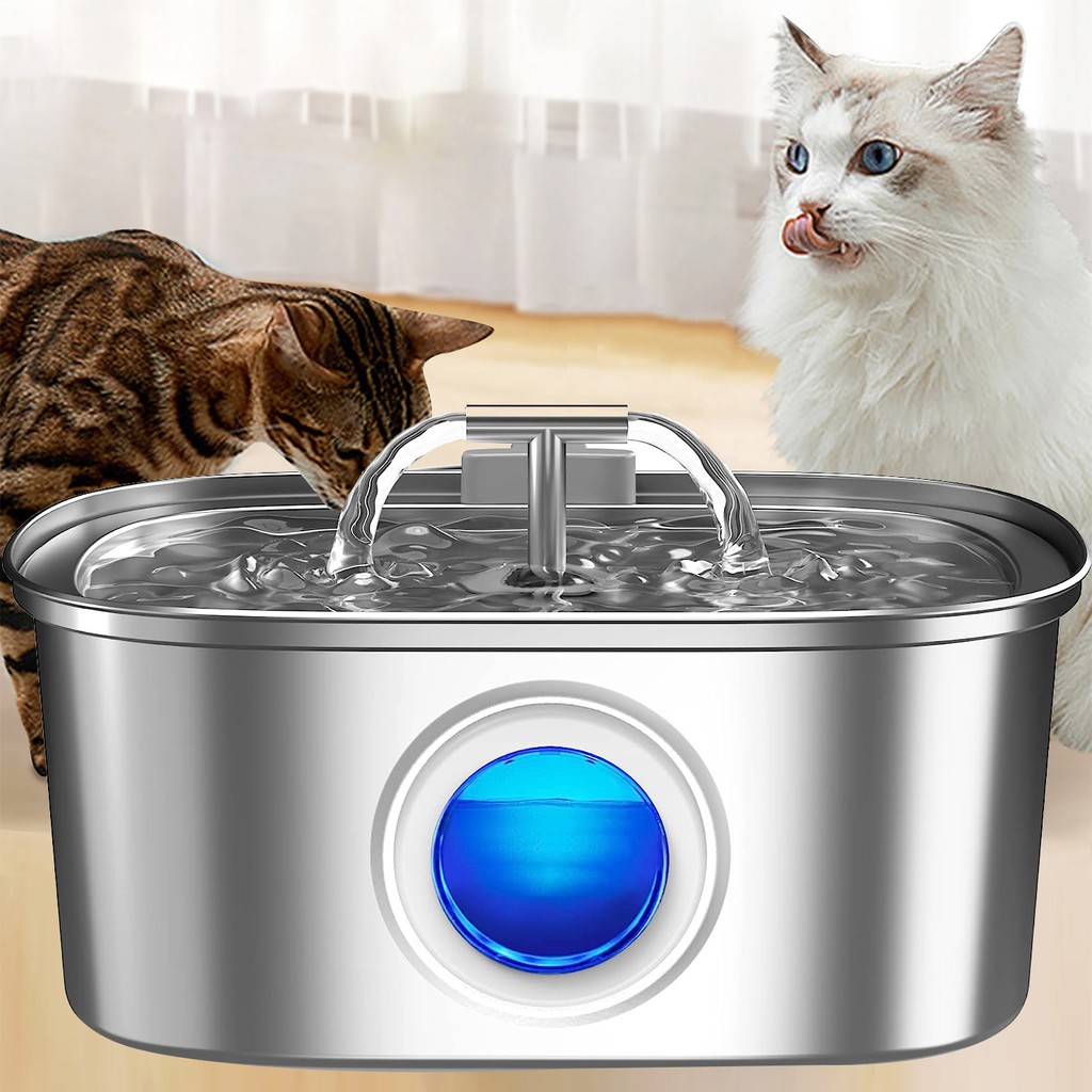 Bebedouro para Gatos Inoxidável 3,2L Automático Filtro Água Fresca - Com Visor Transparente