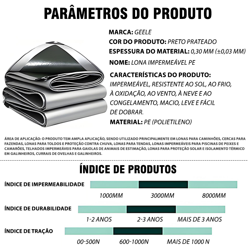 Lona Blackout Cinza Preta Impermeável 300 Micras Grossa 190g/m2