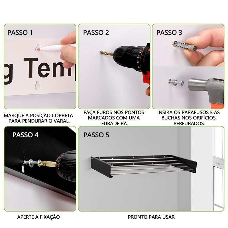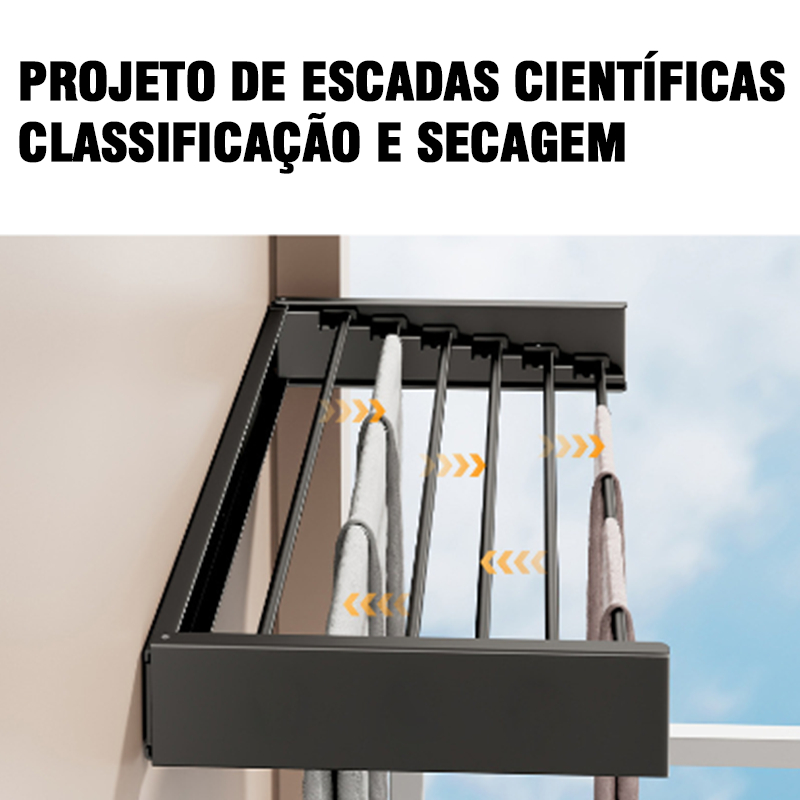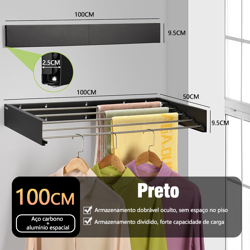 Varal de Parede Mágico Retrátil Dobrável Todo de Alumínio Grande Com 5 Varetas 100/80 cm