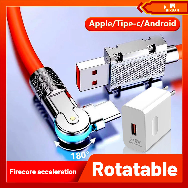 Cabo Dados Extremidade Única 240W Carregamento Rápido Tipo C Micro USB Porta Lightning V8