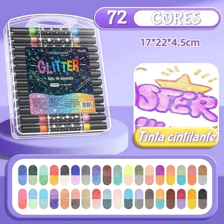 2/24/48 /72 /96 cores Glitter conjunto de caneta marcador de duas cabeças-adequado para crianças, manuais
